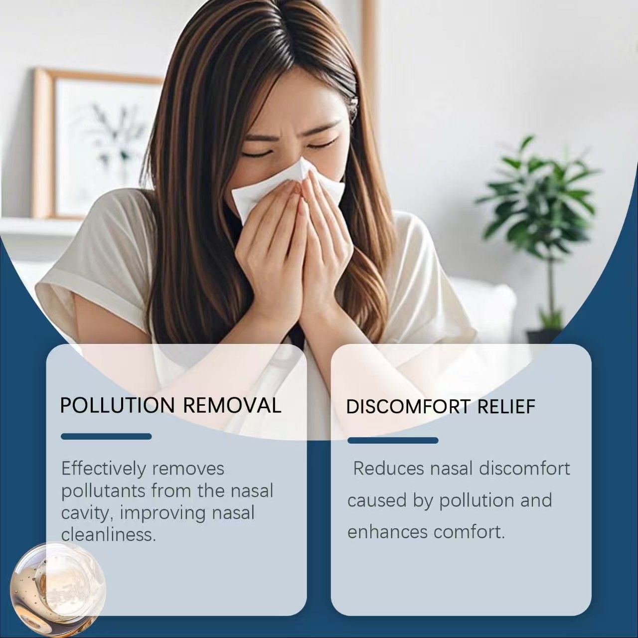 The core advantage of this spray lies in its powerful ability to remove pollutants. It can penetrate deep into the nasal cavity, effectively eliminating harmful substances such as dust, pollen, bacteria and viruses, significantly improving the cleanliness of the nasal cavity. Whether you are in a bustling city, exposed to the pollution from vehicle exhaust and industrial emissions, or during the pollen season, it can provide reliable protection for your nasal cavity, allowing you to breathe more smoothly.