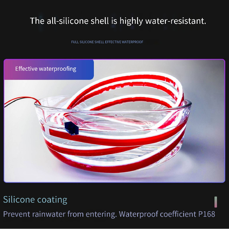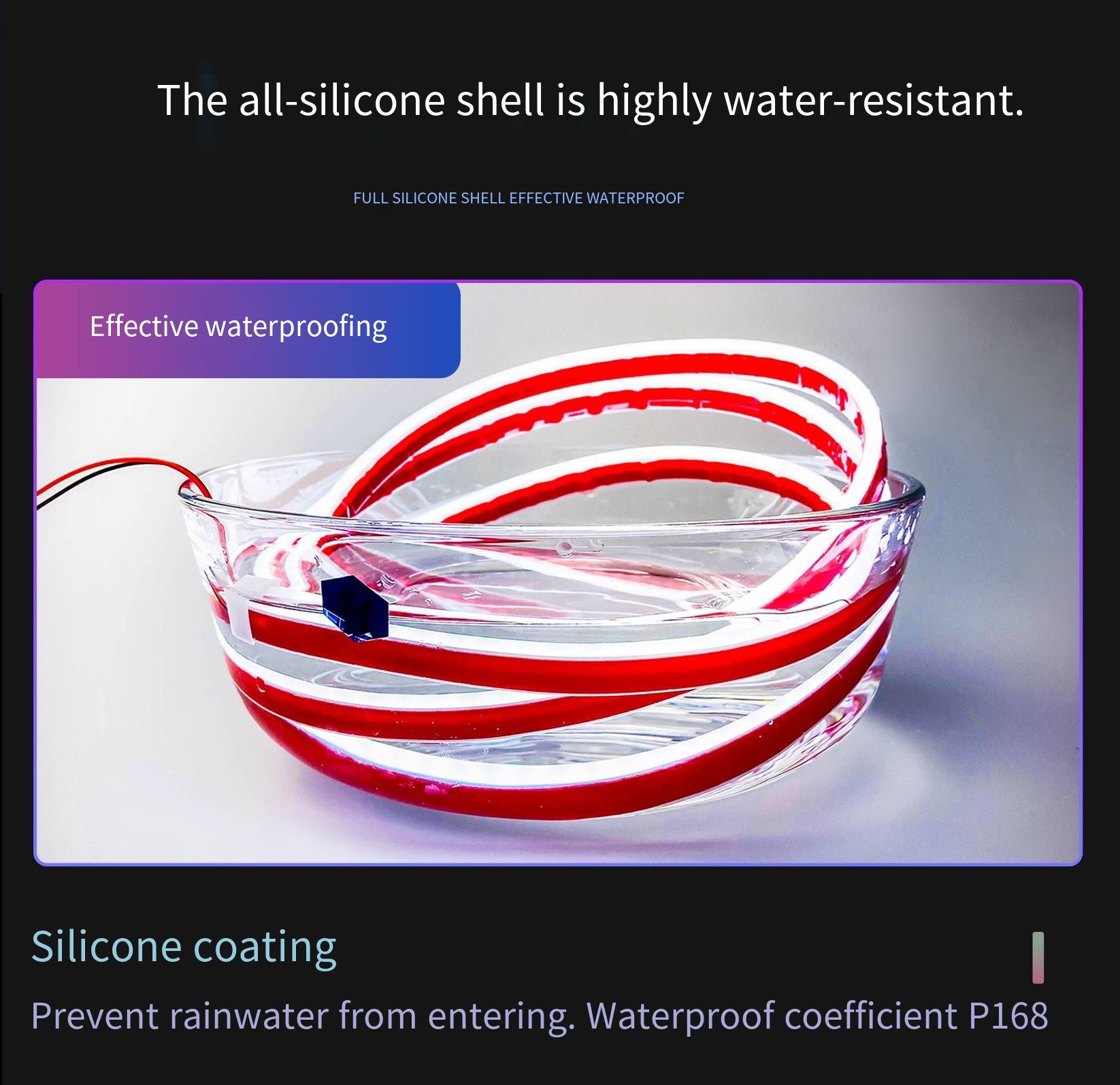 It's the "atmospheric magic tape" for the car hood: The silicone shell is waterproof and durable, and won't be affected even if you wash the car in heavy rain. The red and white stripes have a cyber-tech feel and fit tightly along the edge of the car hood without being obtrusive. Once powered on, it unlocks 8 dynamic light effects such as flowing water, breathing, and gradual change - during night driving, the lights flow along the car body lines, like wrapping a "light and shadow coat" around the front end, making the recognition rate directly fixed at 100%; when parking and taking photos, the breathing light effect alternates in brightness and darkness, enhancing the texture of the front end, and you can easily post it on WeChat Moments and receive a full screen of "request for link".