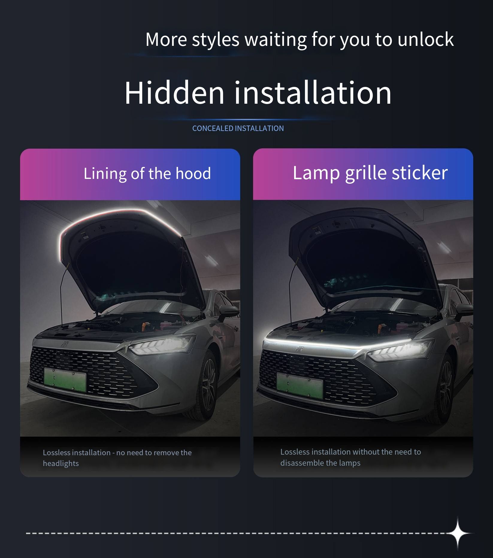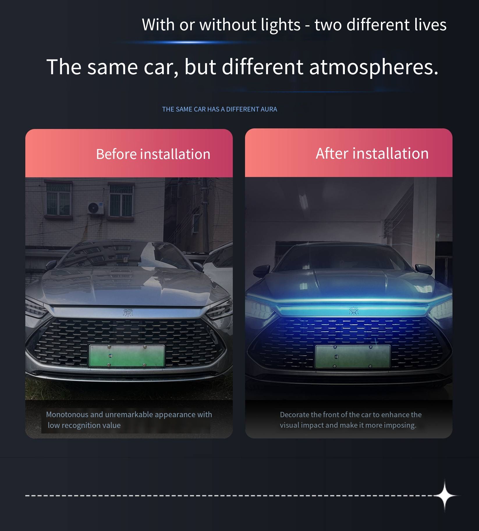 Are you still envying the "eye-catching effects" that other cars have? This LED dynamic light strip for the car's hood can instantly turn your car's front end into the "center stage" of the night!