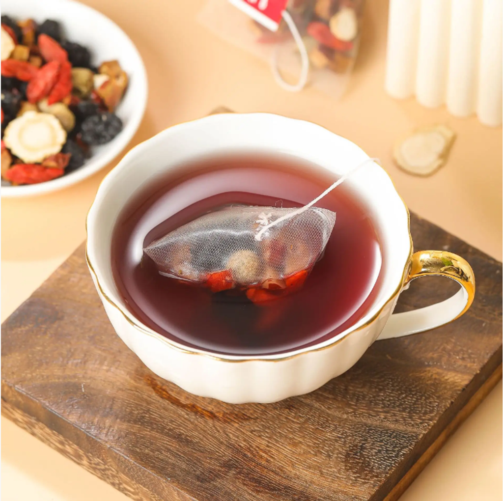 It is a lightweight health-promoting product that incorporates "high-quality ingredients" into the tea bags: When you open the triangular tea bag, you can clearly see sliced ginseng, plump blackberries, dark and shiny mulberries, as well as red dates and rehmannia - all traditional health-nourishing ingredients. There are no filler pieces to deceive the eyes. Every bite is filled with the genuine aroma of the ingredients.