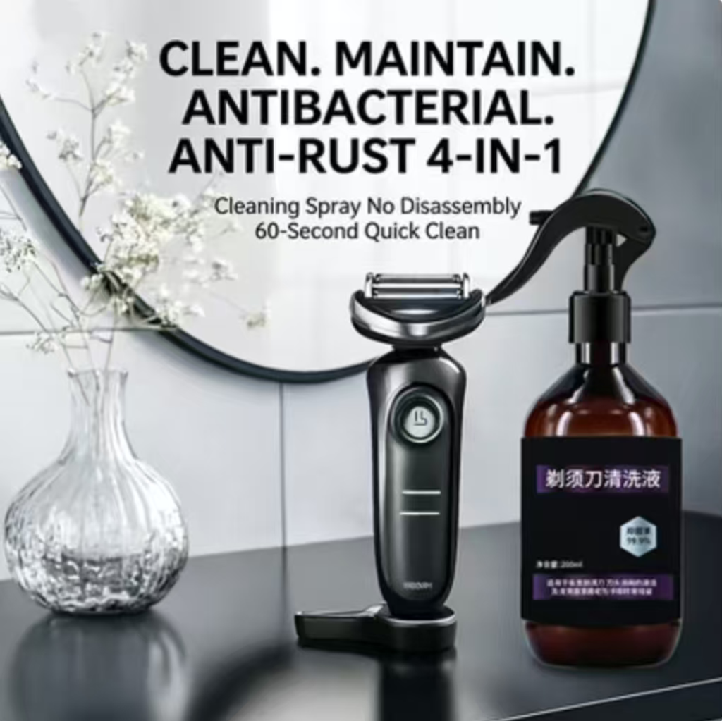No need to remove the blade head or exert effort to scrub! Just spray a few times onto the blade head, and the cleaning solution will automatically dissolve stubborn stubble and grease. Let it stand for 60 seconds before rinsing off. All the dirt in the gaps of the blade head will be removed - whether it's a rotary or reciprocating razor, it can be easily cleaned, saving the trouble of disassembly and cleaning. Even the lazy ones can handle it easily.