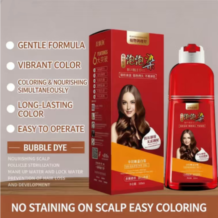 The "Big Red Bottle" bubble hair dye uses a unique gentle formula, rich in various plant essences. It not only colors your hair but also nourishes your scalp and hair. There is no need to worry about irritating your scalp or damaging your hair quality. You can enjoy a new color while maintaining healthy hair.