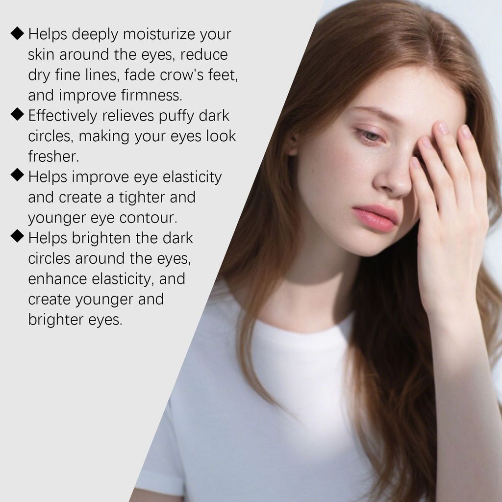 Order today and you will receive 2 eye brightening and moisturizing eye care creams. These creams contain three nourishing ingredients: glycerin, hyaluronic acid and vitamin E. They come with a special brush for easy application. The refreshing and non-greasy texture is suitable for all skin types. This is a gentle eye firming care product that can be used daily. It can immediately improve eye sagging and reduce deep wrinkles.