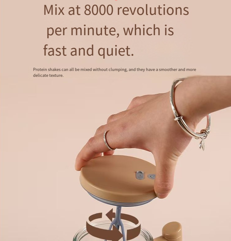 The cup body is made of glass with a handle, giving a smooth and non-slip grip; there's just one touch-sensitive button on the top, and a gentle press will start it, and you can complete the "add powder - add water - stir" process with one hand - in the morning when you're in a hurry to make coffee, or after exercising to brew protein powder, you don't have to search for a spoon, and a 10-second process can get you a uniformly mixed drink.