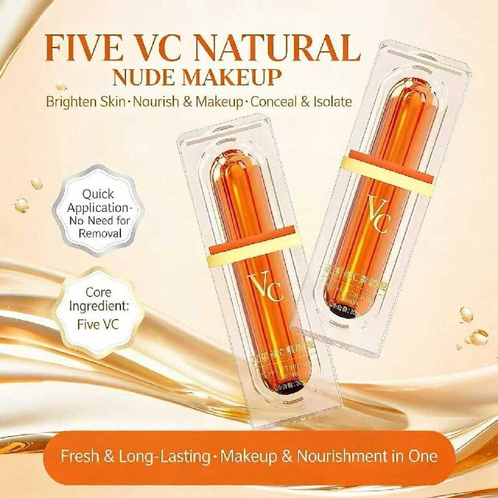Order today and you will receive 3 bottles of Vitamin C concealer that naturally shrink pores, brighten the skin, and moisturize. It only takes 1 minute to achieve a natural, nude makeup look. The five layers of Vitamin C nutrients nourish the skin, cover blemishes and brighten the complexion, without the need for heavy foundation or overly pale makeup. Even after removing the makeup, it will become even more radiant.