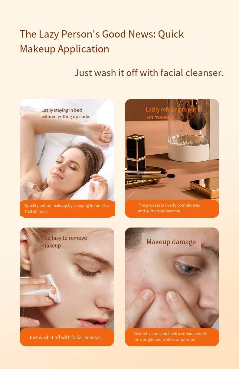 It's not just "makeup", but also "nourishment" - the core five layers of VC ingredients can gradually nourish your skin as you apply the "fake" makeup: long-term use can improve dullness and yellowish tones, making your skin glow from within, not just a "instant white". What's more, it's even "skin care friendly": there is no heavy makeup burden, and sensitive skin can use it with confidence. Even without removing makeup - you can go home after work, wash your face with a cleanser, and that's it - saving a lot of effort for a tired night.