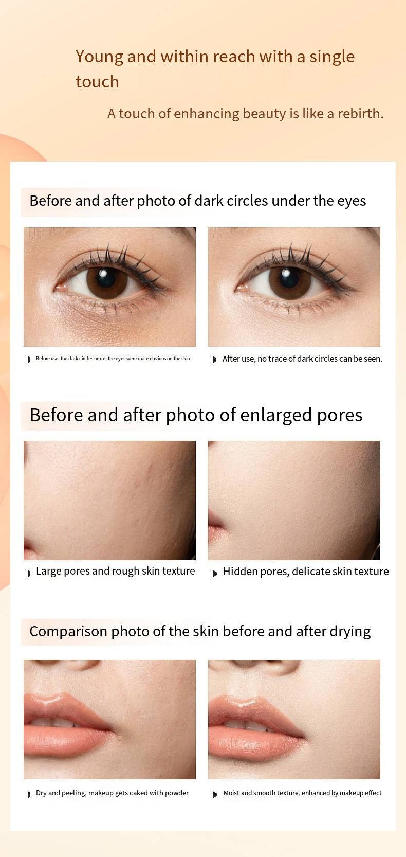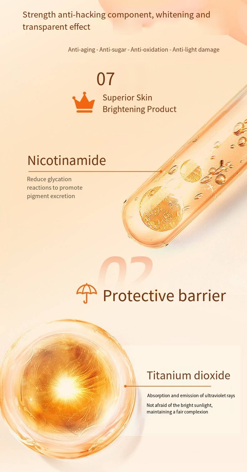 The core five-step VC ingredients allow you to achieve a natural and luminous complexion while secretly nourishing your skin. After one minute of application, yellow and dark skin instantly becomes smooth and bright, with just enough coverage to hide dullness and redness, without being overly whitened or cakey. The fake natural makeup effect is fully achieved.