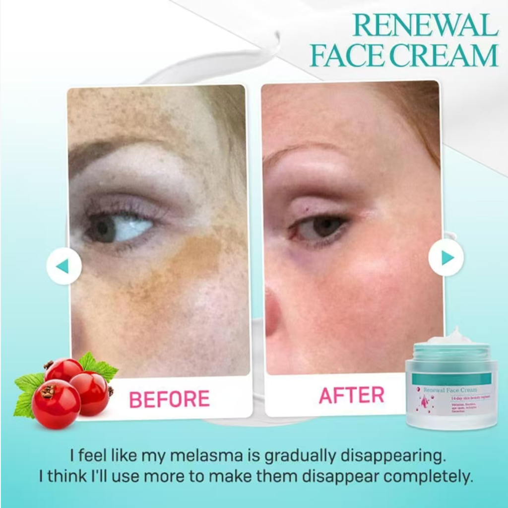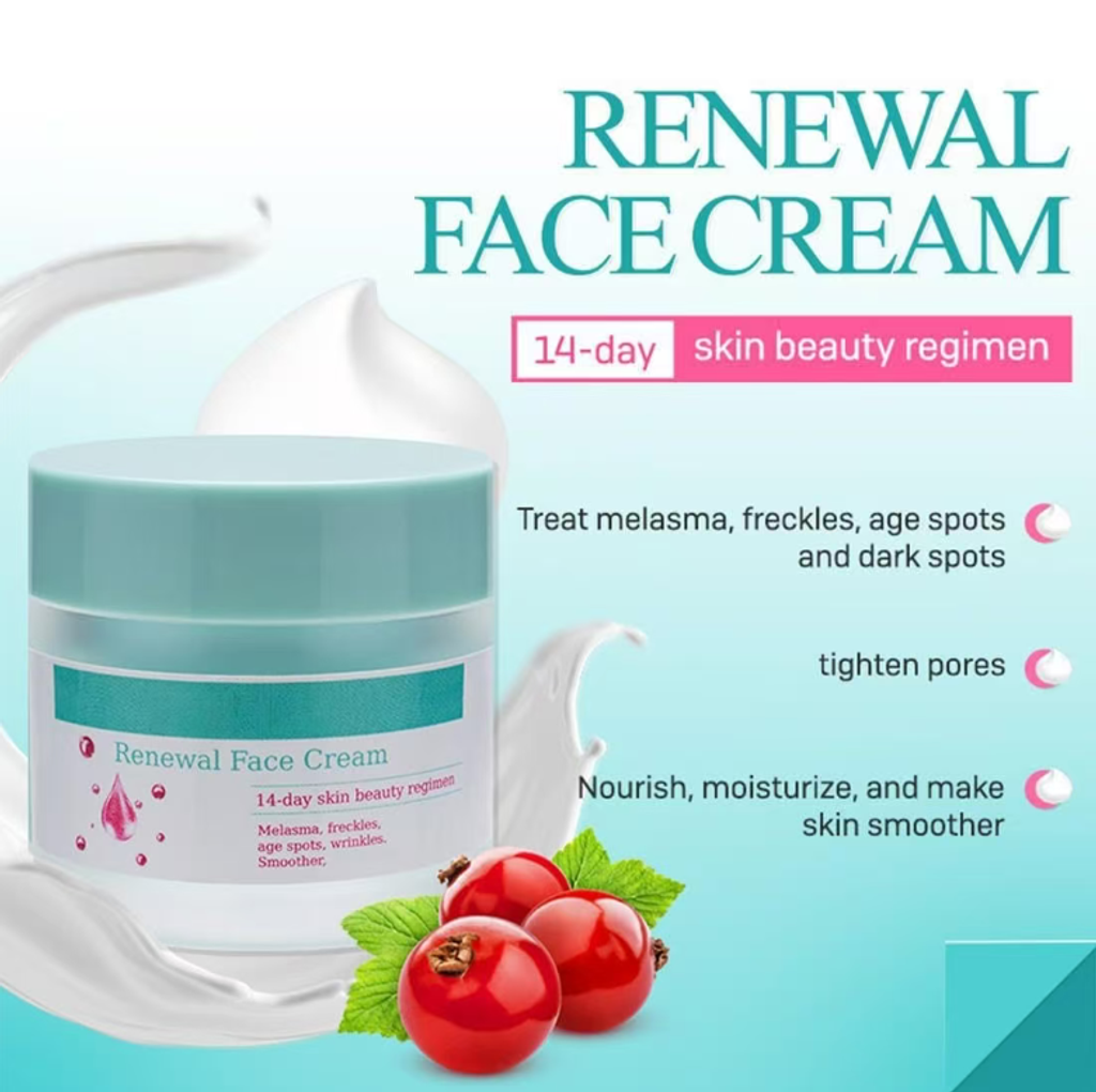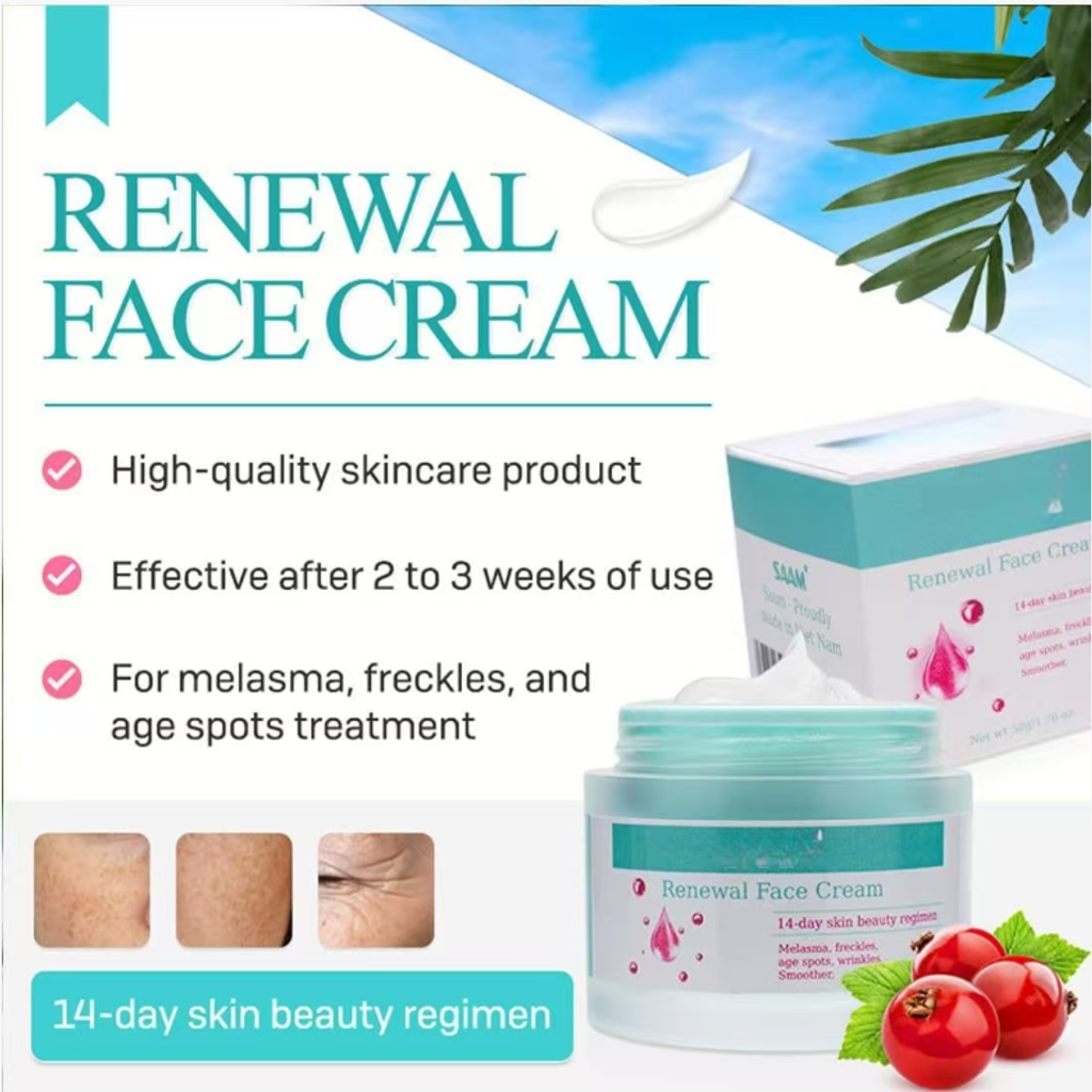 The yellowish-brown spots and freckles on the face are like "light brown marks" that won't go away. The rough pores and dry lines after staying up late make a bare face even less confident? This bottle of Renewal Face Cream is a gentle cream that combines "lightening spots + tightening + moisturizing" - it focuses on 14 days of skin rejuvenation, using its soft nurturing power to conduct a "blemish cleaning" for the skin.