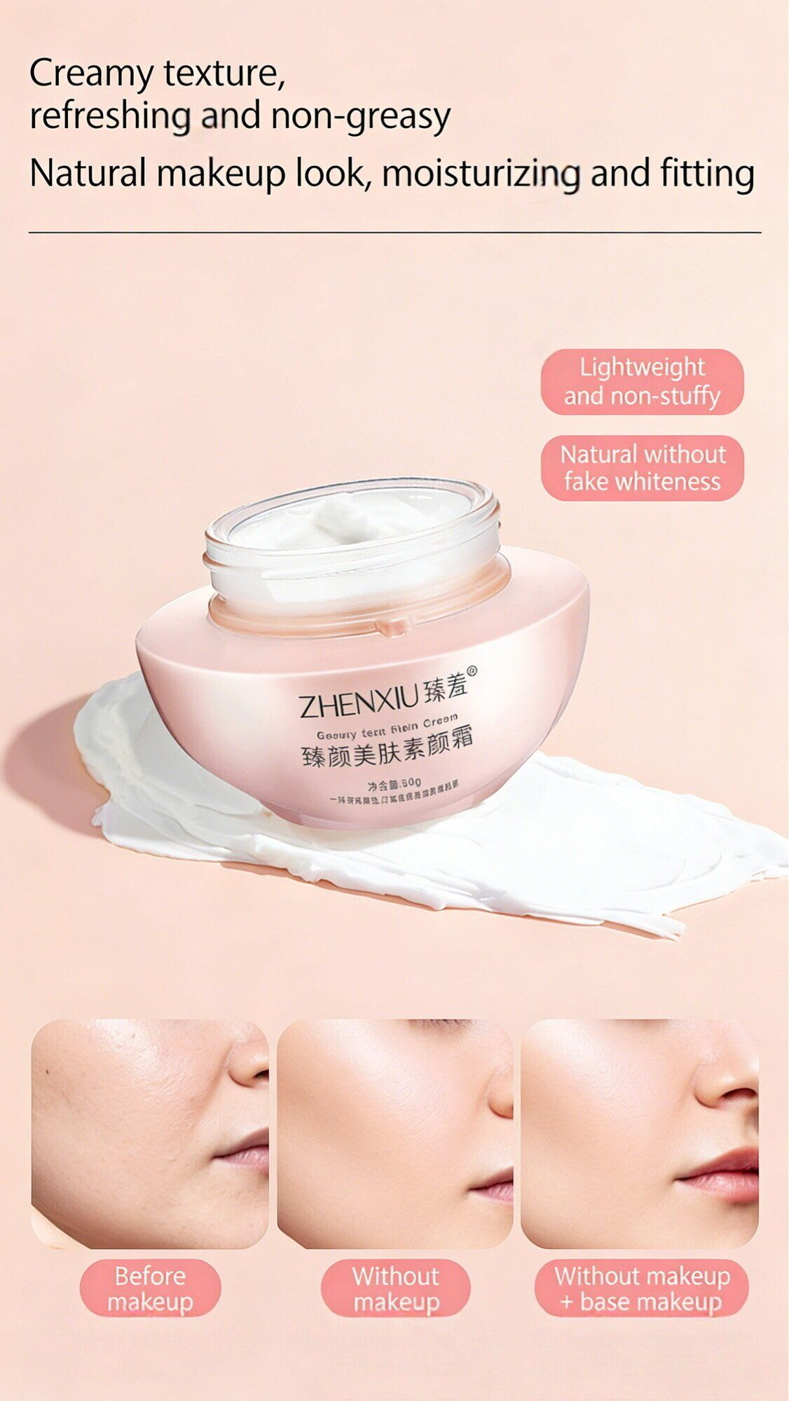 Whether it's students who have to rush to classes at 8 am, office workers who don't have time to put on makeup during the commute, or date-goers who want to "fake a skinless look", just scoop up a spoonful and apply it all over the face. In 5 minutes, you can have a clear and natural nude makeup look - your complexion is brightened, pores are hidden, and your skin is secretly nourished. Truly achieving "lazy yet beautiful". A 50g bottle fits in your bag, making it convenient for touch-ups and maintaining your color. It is an indispensable "lazy beauty cheat device" for daily use!