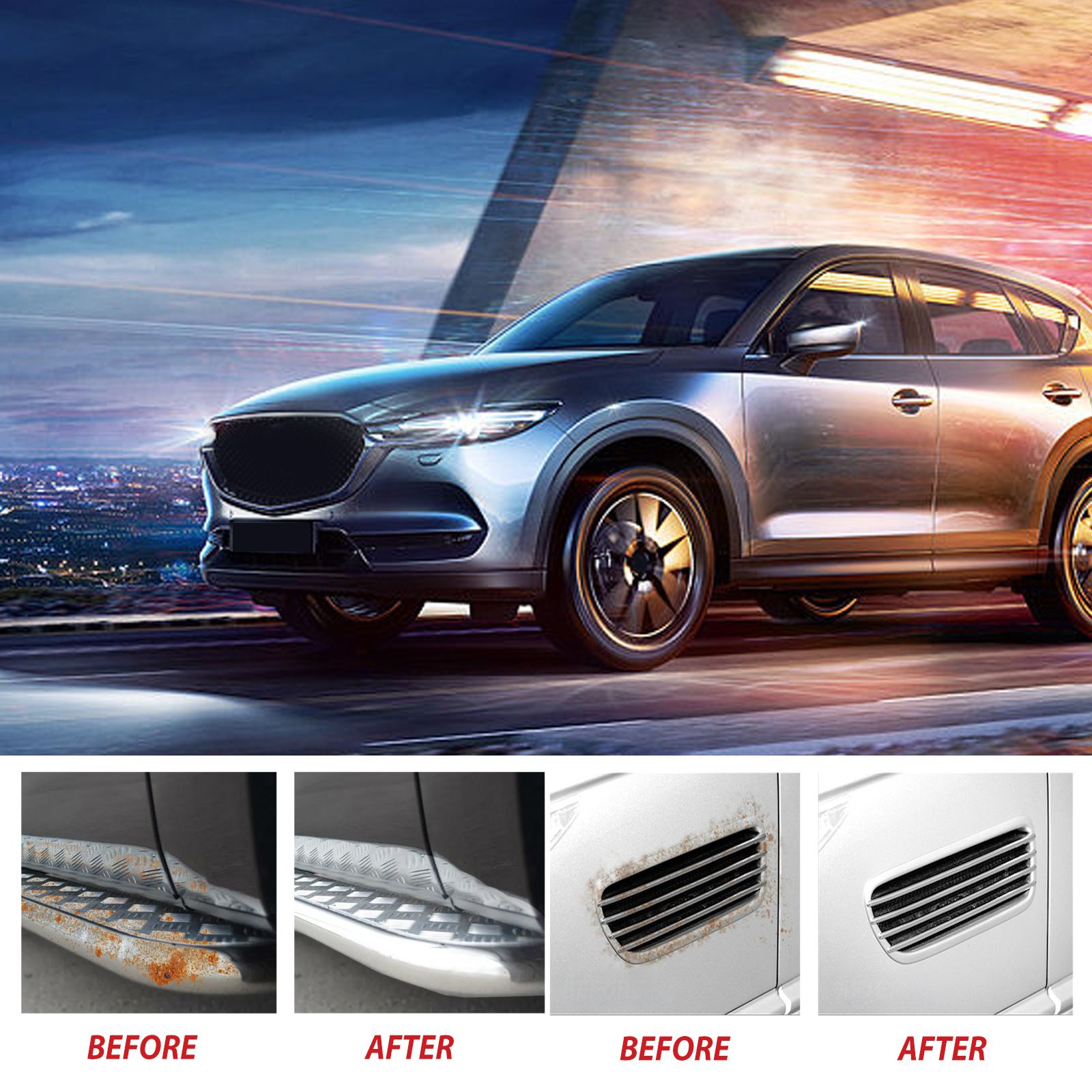 The application scenarios are more extensive: automotive wheels, body metal decorations, mechanical gears, metal components, etc. A small bottle can handle the restoration of the appearance level of your car and also help with the renewal maintenance of mechanical components.