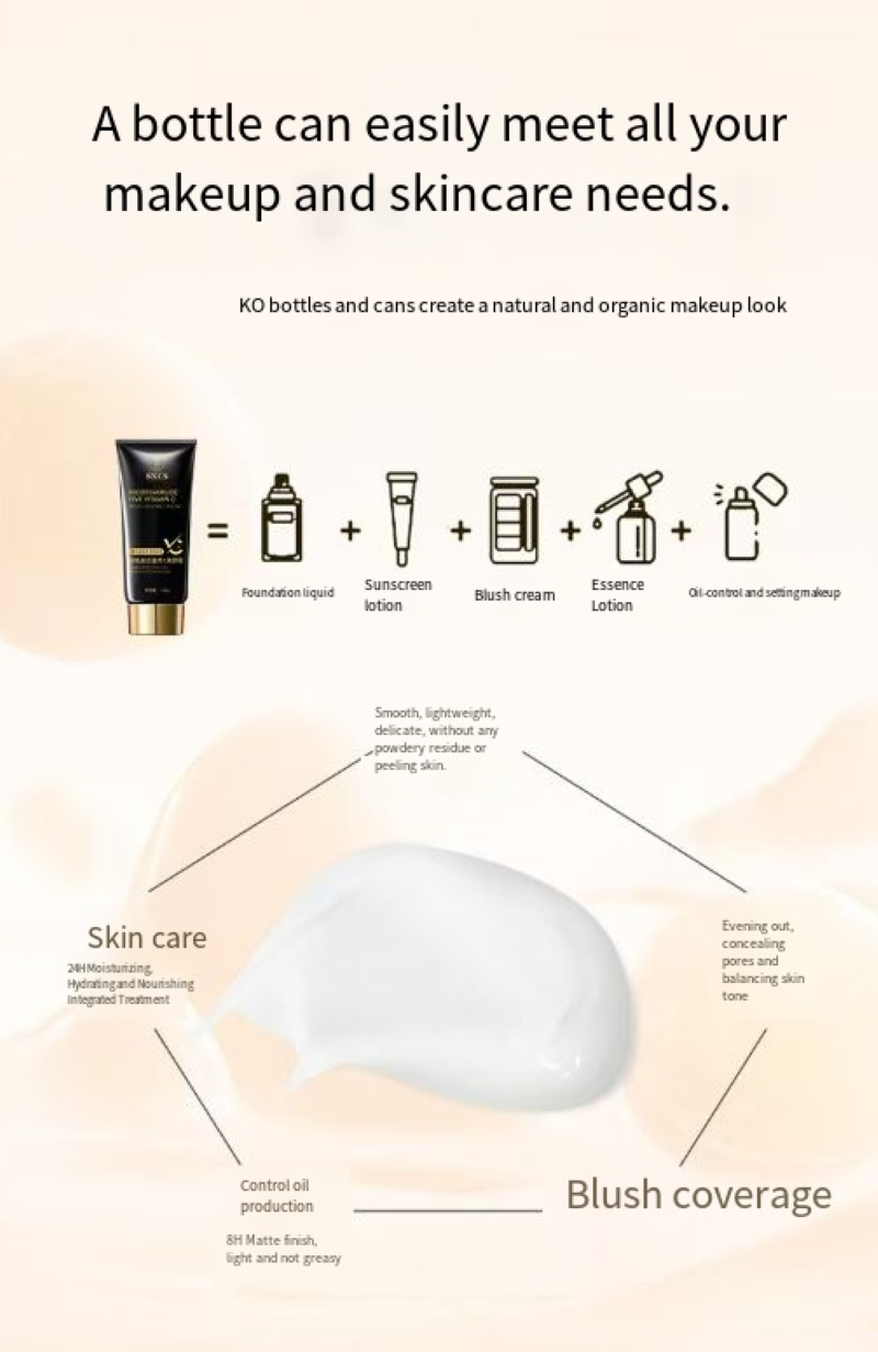 If you place an order today, you will receive 5 bottles of Niconeanami Five-Component Vitamin C Waterproof and Sweat-Resistant Facial Lotion. It only takes 1 minute to achieve a matte makeup effect, covering blemishes and dullness, and eliminating the false appearance of the makeup. Its ice cream texture can closely adhere to the skin, nourish the skin, and last for a whole day. It is a must-have for daily use. Carry a soft light filter with you when going out.