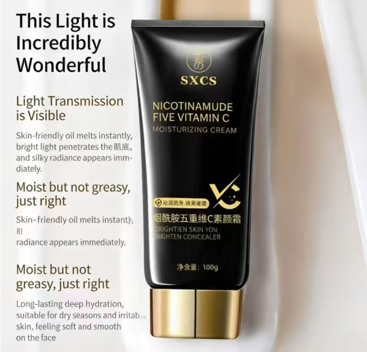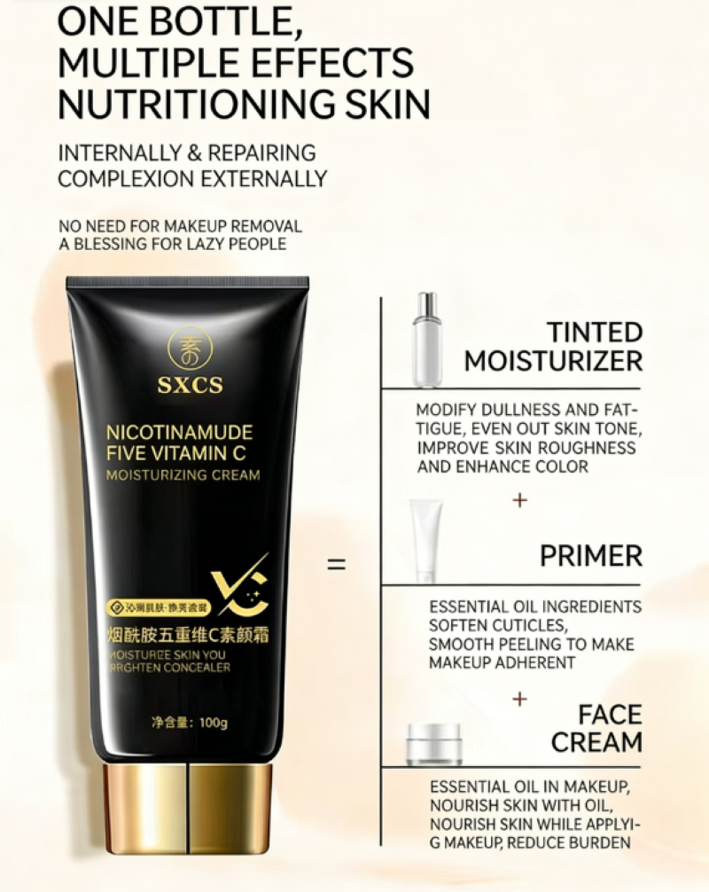 SXCS Nicotinamide Five-Step Vitamin C Concealer Makeup Primer is the confidence you need for a "1-minute makeover" - no need to layer on foundation, just squeeze a pump and blend it out. Dark circles, acne marks, and pores all disappear, giving you a "soft light filter" when you go out.