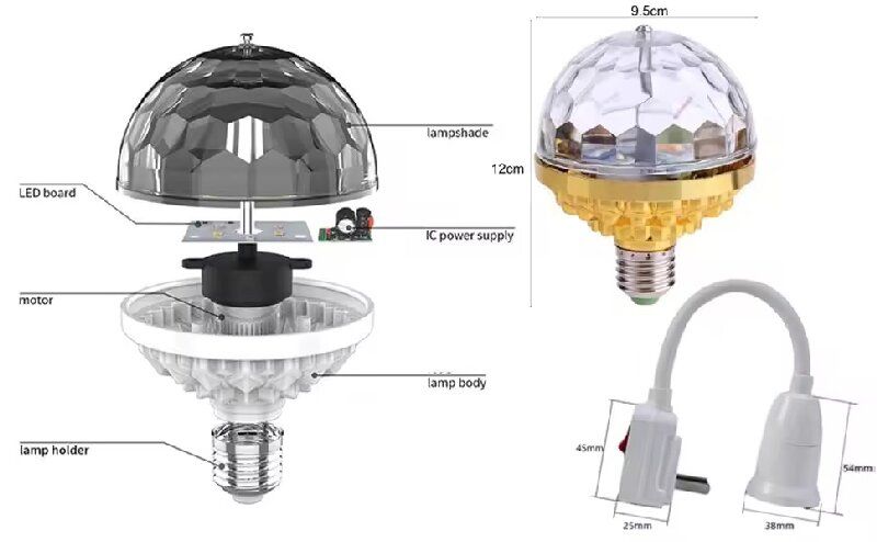 Colorful Rotating Magic Ball Lamp: Do you want to turn your home moments into a joyful scene? This golden base magic ball lamp is the answer! It comes with multi-color automatic switching + 360° rotation + flashing effects. It turns on immediately upon power, without any complicated operations. The rhombus-shaped lampshade refracts brilliant light, covering the walls and ceiling, like bringing a disco into the living room - for friends' gatherings, solo relaxation, or holiday decorations, you can simply turn it on to fully create a "Bright & Beautiful" happy atmosphere. Compact in size, it is compatible with ordinary lamp holders and can be plugged in to use immediately, making every leisure time shine with colorful brilliance.