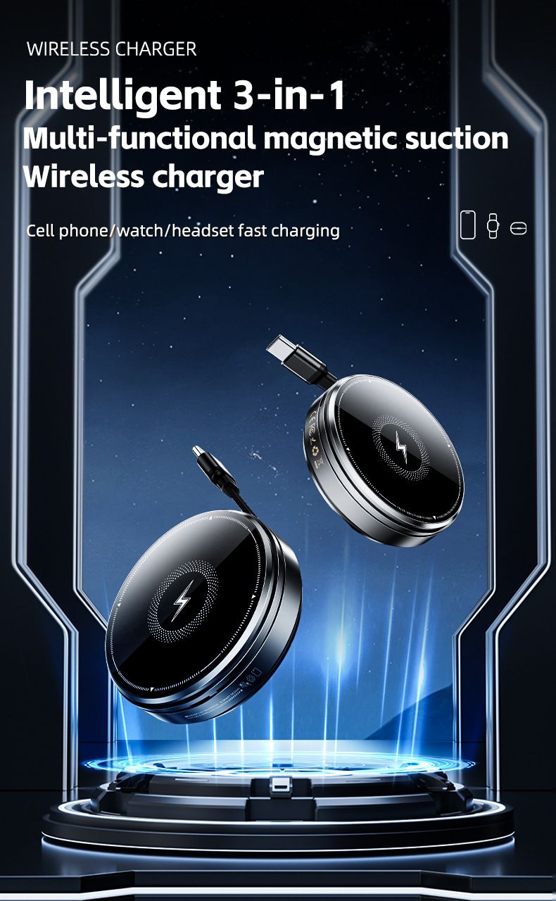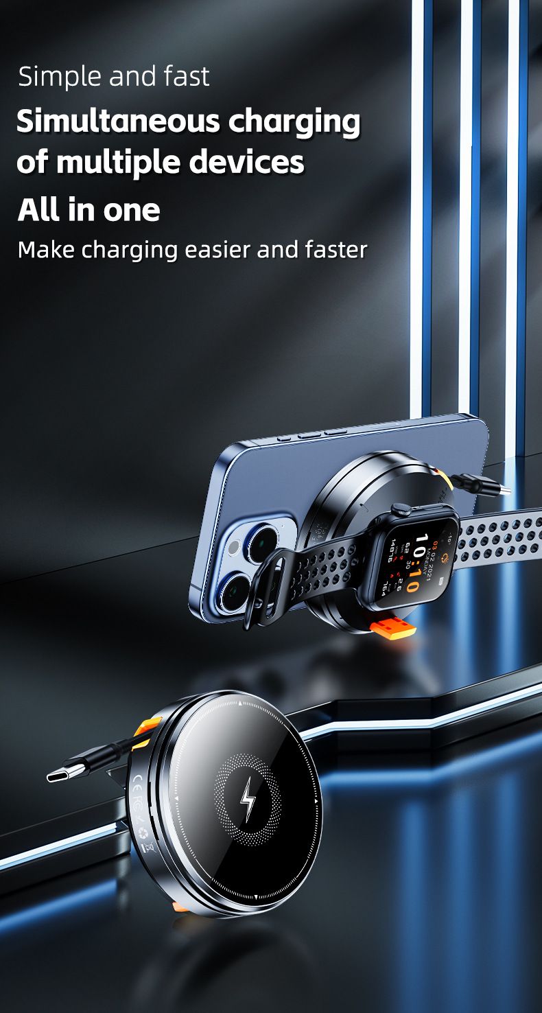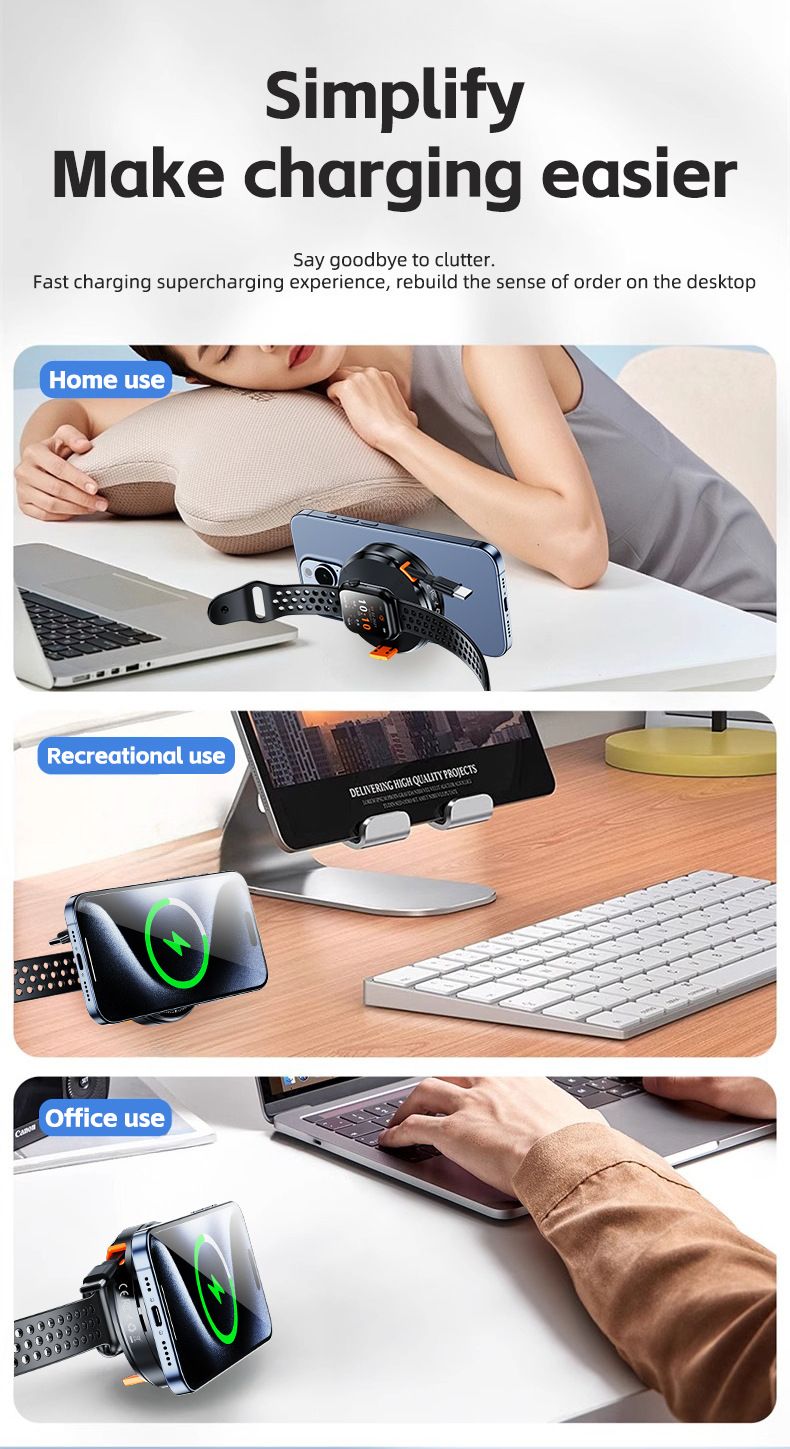 Whether it's charging your phone before an early flight, recharging your watch during commuting, or charging your headphones during camping, this magnetic charger can become your "energy support" for digital devices - with one device, solve all charging worries.