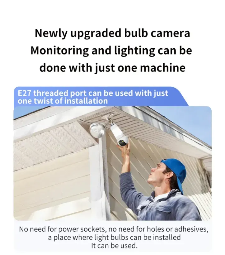 It adopts the E27 standard screw-type design, which is as simple as changing a light bulb - no need to drill holes or wire. As long as there is a lamp holder, it can be easily installed. Renters want to add security to their rental houses? Shop owners want to monitor their shops at a low cost? Newbies want to install cameras at home? This camera allows you to "turn it and go" to complete the task. Truly achieving "zero threshold" security deployment.