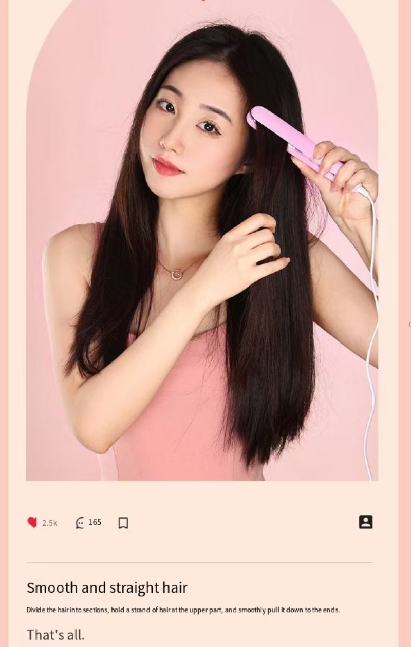 With a small size, it can be easily tucked into the makeup bag without any problem - it won't trip the circuit breaker in the dormitory. The 3C safety certification adds to the peace of mind. Don't underestimate its compactness; it's actually very versatile: oil-coated surface panel + negative ion hair care, straightens without frizz, curls without damage, and can hold even the soft hair on the sofa. The dual-purpose design allows you to either style a high-crown straight hair or a lazy wave curl with just one board, without the need to switch tools.