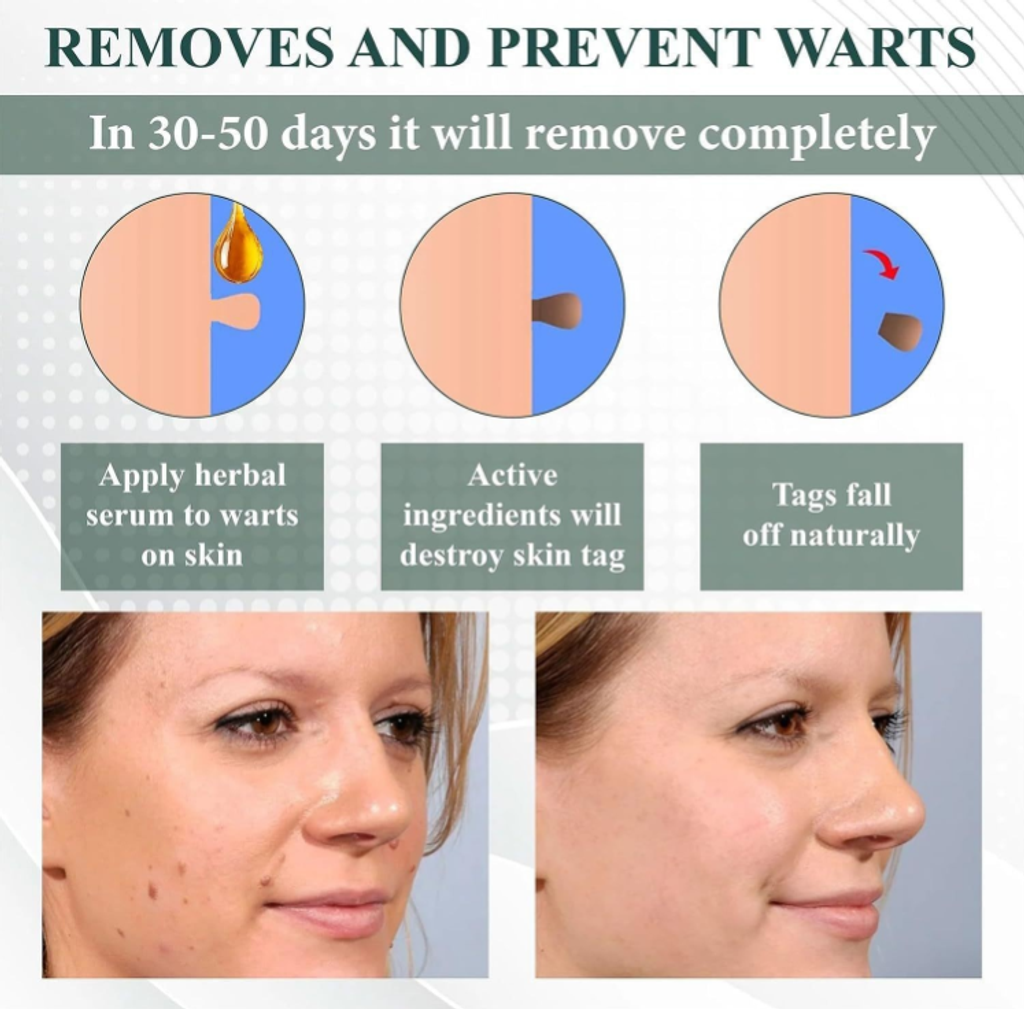 If used consistently for 2-3 weeks, moles and warts will gradually become lighter and fall off naturally, without leaving scars or pits, and the skin will be as clean as if it had never had any blemishes.