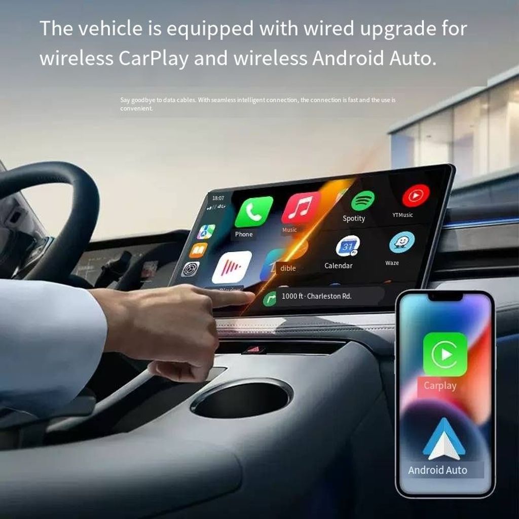 Are you still enduring the constraints of wired connections? This wireless CarPlay/Android Auto car adapter unlocks a new era of in-car connectivity for you! It is widely compatible with multiple car models, plug-and-play with no cumbersome operations required. Apple users can enjoy CarPlay's navigation, music, call and other functions, and Android users can also achieve seamless integration between their phones and car infotainment systems through Android Auto. Whether it's the clear road condition display during navigation or the free switching while listening to music, you can enjoy intelligent convenience during your drive. It comes with a full set of accessories, making installation and use so easy. Say goodbye to phone holders while driving from now on, and make every trip full of a sense of technology and comfort.