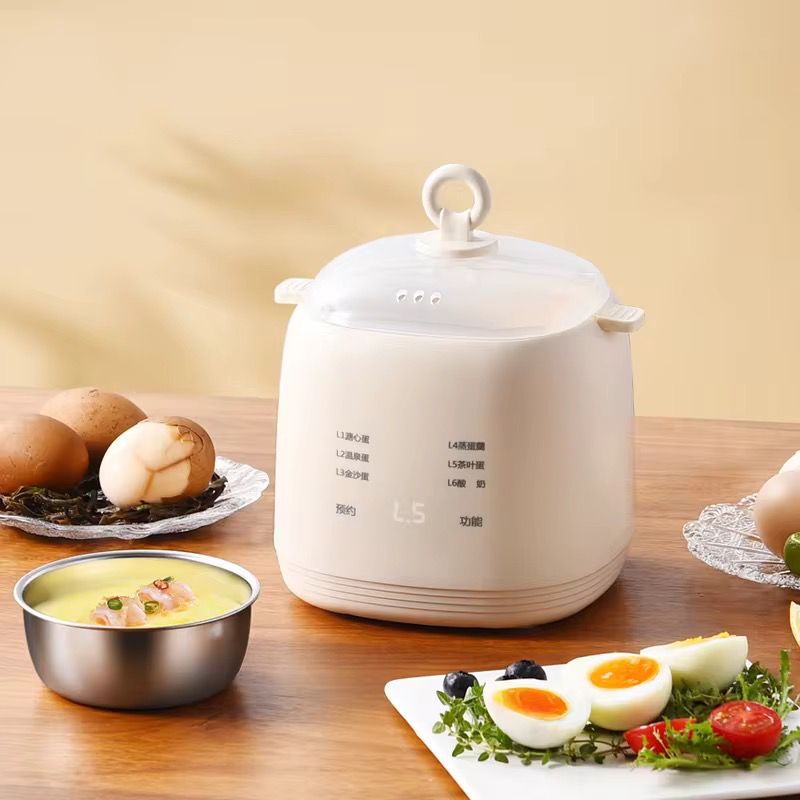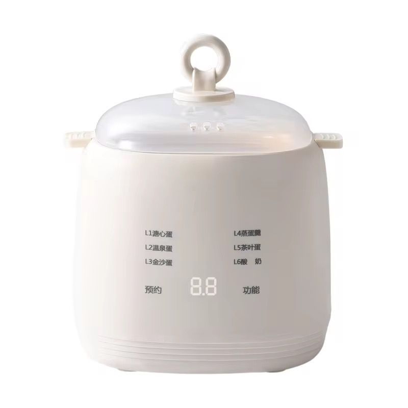 This multi-functional egg cooker features 6 intelligent modes, allowing you to easily prepare soft-boiled, hot spring, and gold egg dishes. It can also be used to make tea eggs, steamed egg soups, and fermented yogurt, meeting the needs of all scenarios such as breakfast, supplementary food, and light meals. The transparent visible cover makes the cooking progress clear at a glance, eliminating the need to repeatedly open the lid and disturbing the heat. The multi-layer steaming rack design enables simultaneous cooking of egg products and egg soups, ensuring no flavor transfer. The precise temperature control technology firmly locks in the tenderness of the ingredients, eliminating the worries of overcooked or undercooked eggs. The compact design does not take up much space, and its high appearance level is suitable for various kitchen styles. The operation is simple with a one-click start. It is an excellent helper for busy office workers for quick breakfast and mothers for making supplementary food, making every meal healthy and efficient.