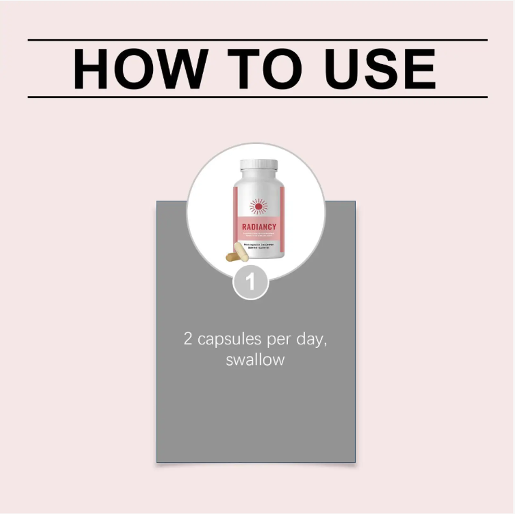 - Office workers: Long periods of sitting and staying up late for work, dull skin and digestive discomfort? RADIANCY replenishes energy for you, taking one capsule in the morning to awaken the skin's vitality; one capsule after meals to assist in digestion, allowing you to remain radiant and in good condition during high-intensity work.