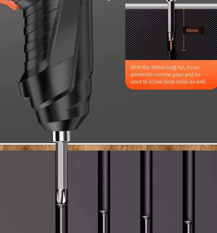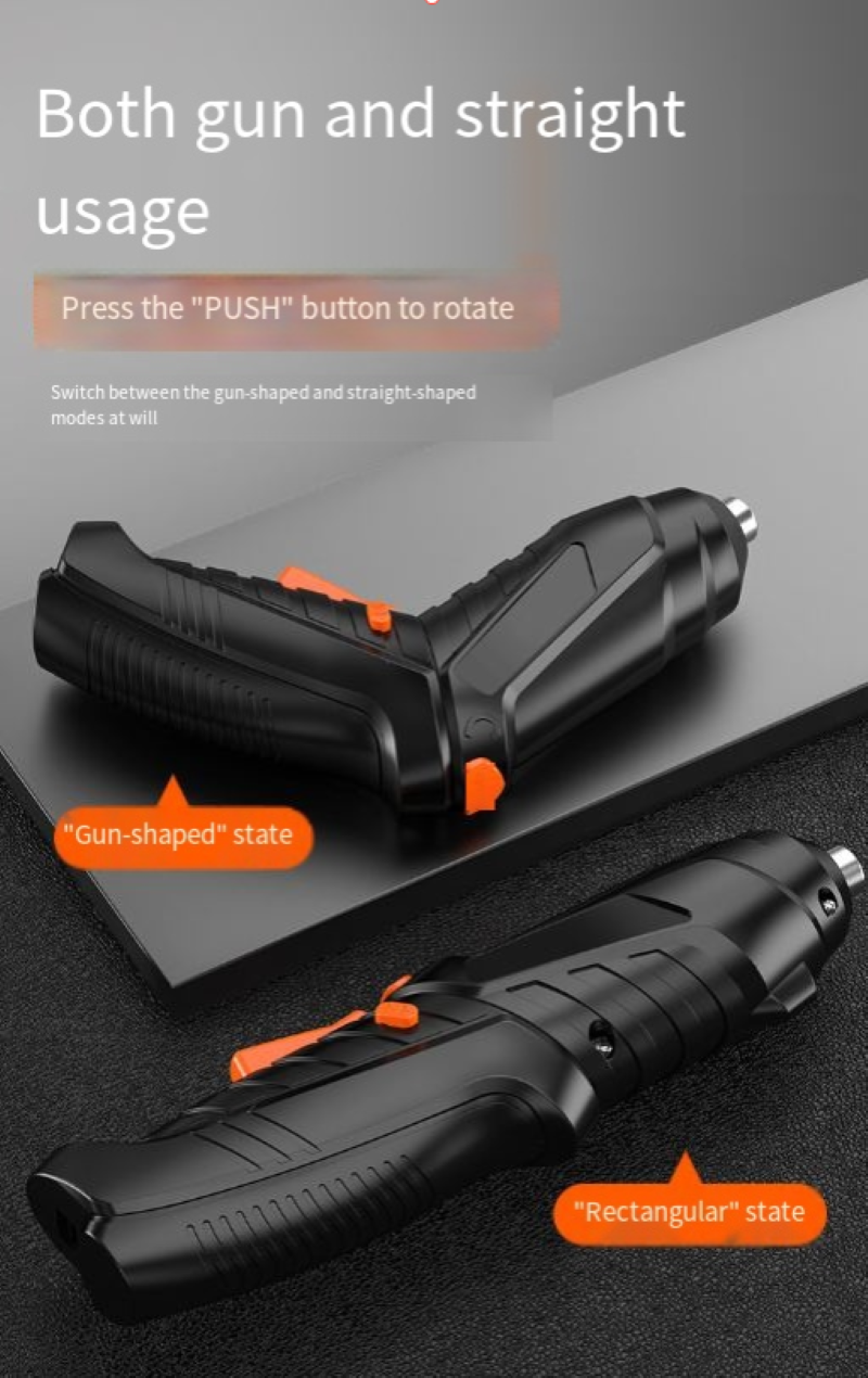 Rotatable gun-style screwdriver, powered by a strong motor, featuring dual-purpose high torque, with a variety of bits suitable for multiple scenarios. It can easily tighten screws with strong torque, and the ergonomic grip + flexible angle make it convenient for home installation and maintenance, making it a great helper in improving your life efficiency.