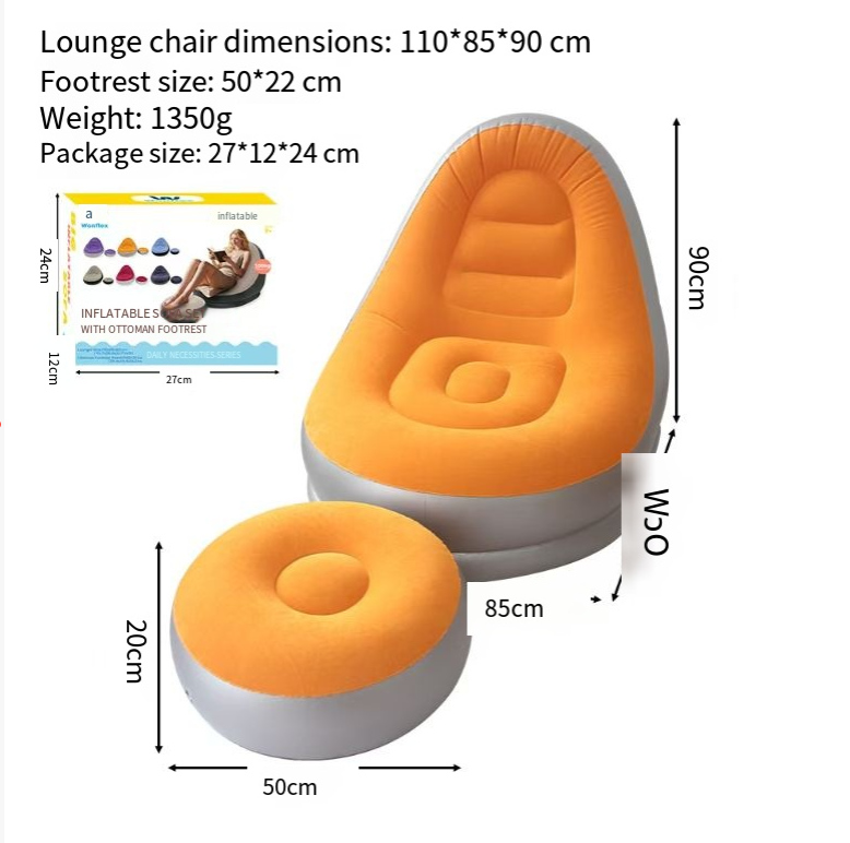 It's impossible to fit a large sofa in a rental apartment, camping on grass is uncomfortable, and sitting slumped at home always makes your back ache - this plush inflatable lazy sofa is the "relaxation savior" you can pack in your bag. It comes with a footstool and an inflation pump. Whether you're renting, camping, or on a balcony, it can wrap your entire body in softness with just one stretch.