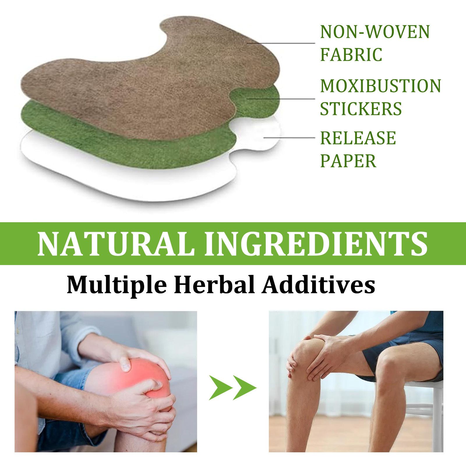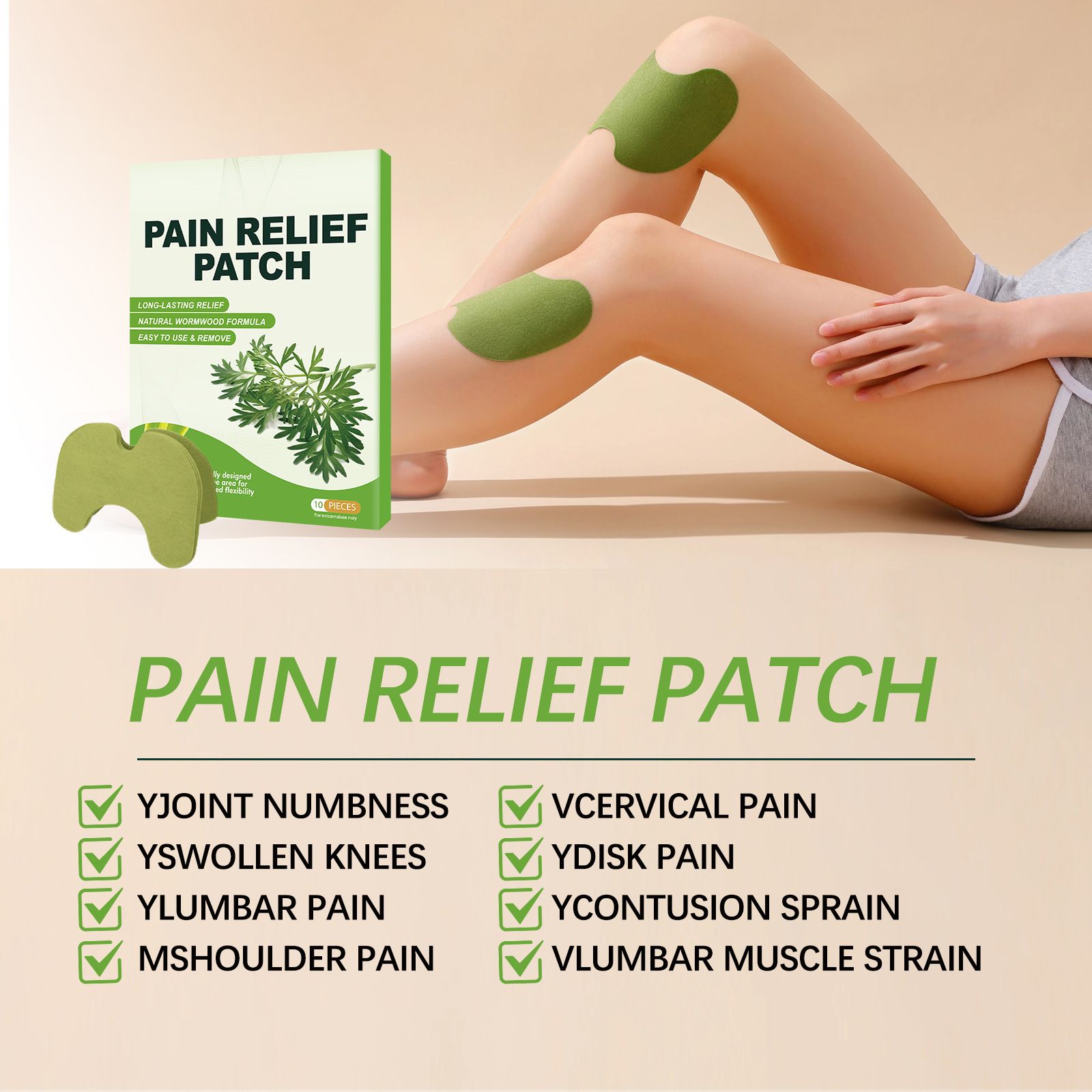 Natural Mugwort Pain Relief Patch: This pain-relieving patch is made with a core formula of natural mugwort extract. It penetrates deeply into muscles and bones, providing long-lasting relief from discomfort. It comes in a 10-piece pack, fitting areas such as the shoulders, neck, waist, back, knees, etc., and is flexible without being restrictive. It is easy to apply and remove without leaving any residue, and is gentle on the skin without causing irritation. Whether it's during breaks at work, after household chores, or before and after exercise for recovery, just one patch can relieve pain and help you regain flexibility and vitality, making it easy to handle daily and exercise situations.