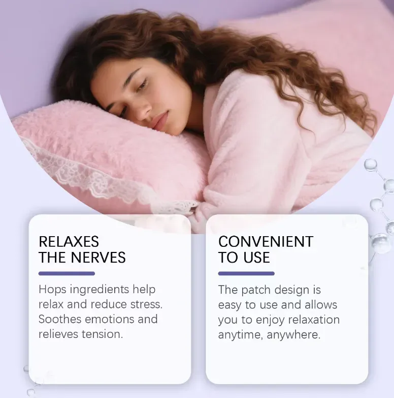 Using the calming sleep care patch is like giving your body and mind a gentle SPA. It can effectively relieve anxiety before sleep, allowing tense thoughts to gradually relax; it can prolong the duration of deep sleep, allowing the body to receive more thorough repair and nourishment during sleep; it can reduce tension, enabling you to forget all your troubles in your sleep; it can improve sleep quality, allowing you to wake up refreshed and full of energy the next day to greet the new day.