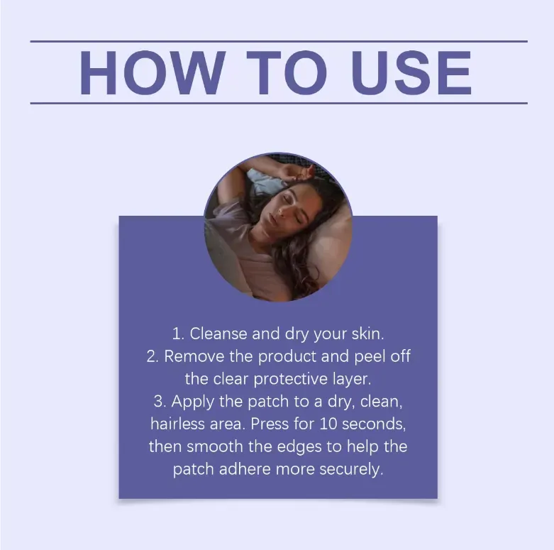 This care patch is designed very thoughtfully. It adopts a convenient patch form, and you just need to gently stick it on before going to bed, and you can enjoy relaxation and tranquility throughout the night. Whether you are in a comfortable bed at home, or on a business trip or during a journey, you can use it anytime and anywhere, making high-quality sleep no longer restricted by location.