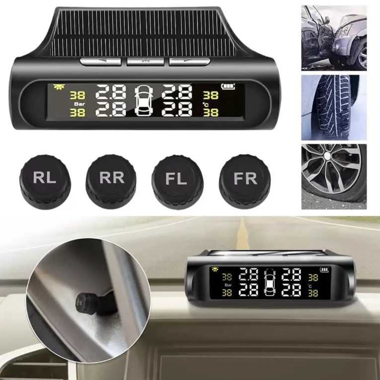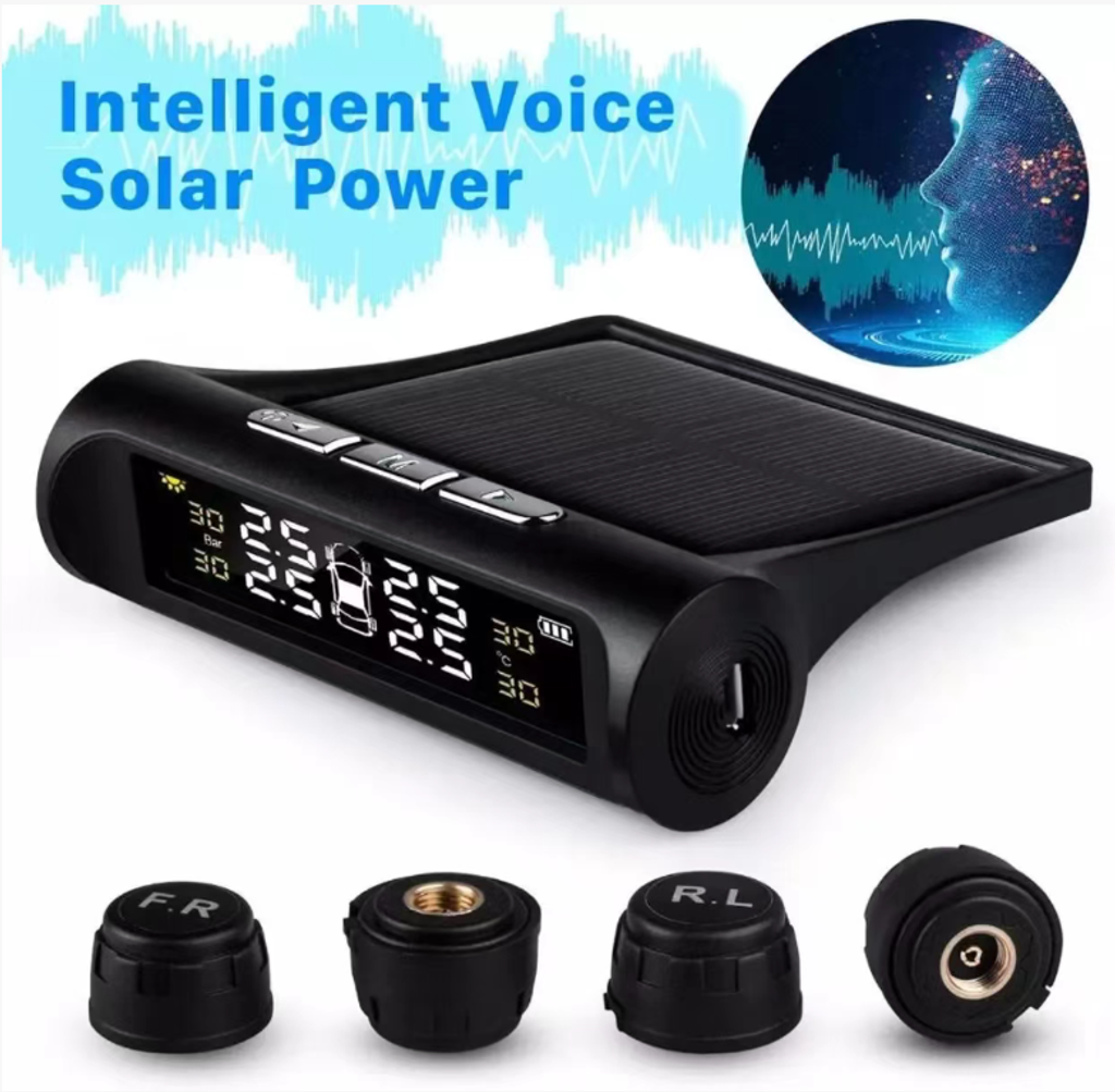 Solar-powered tire pressure monitor, the invisible guardian of driving safety, real-time display of tire pressure and temperature, abnormal voice warning to prevent blowouts, solar panel automatically charges and requires no maintenance. Installation is simple. The screen is clearly readable under strong light. It protects the tires, saves fuel, and is a necessary safety equipment for vehicles.
