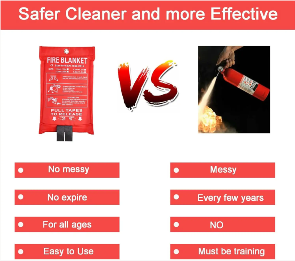 It is a "physical fire extinguishing tool" specially designed for fire scenarios: Made of 100% glass fiber weaving, it can withstand a maximum temperature of 1022°F (about 550°C) - oil pan fires and small electrical fires can be extinguished simply by covering them. Based on the core principle of isolating oxygen, it won't leave a mess like dry powder fire extinguishers do, nor will it release irritating gases. Even when covering kitchenware or furniture, after extinguishing the fire, it can be wiped clean, causing no damage to the items and not being irritating to the senses.