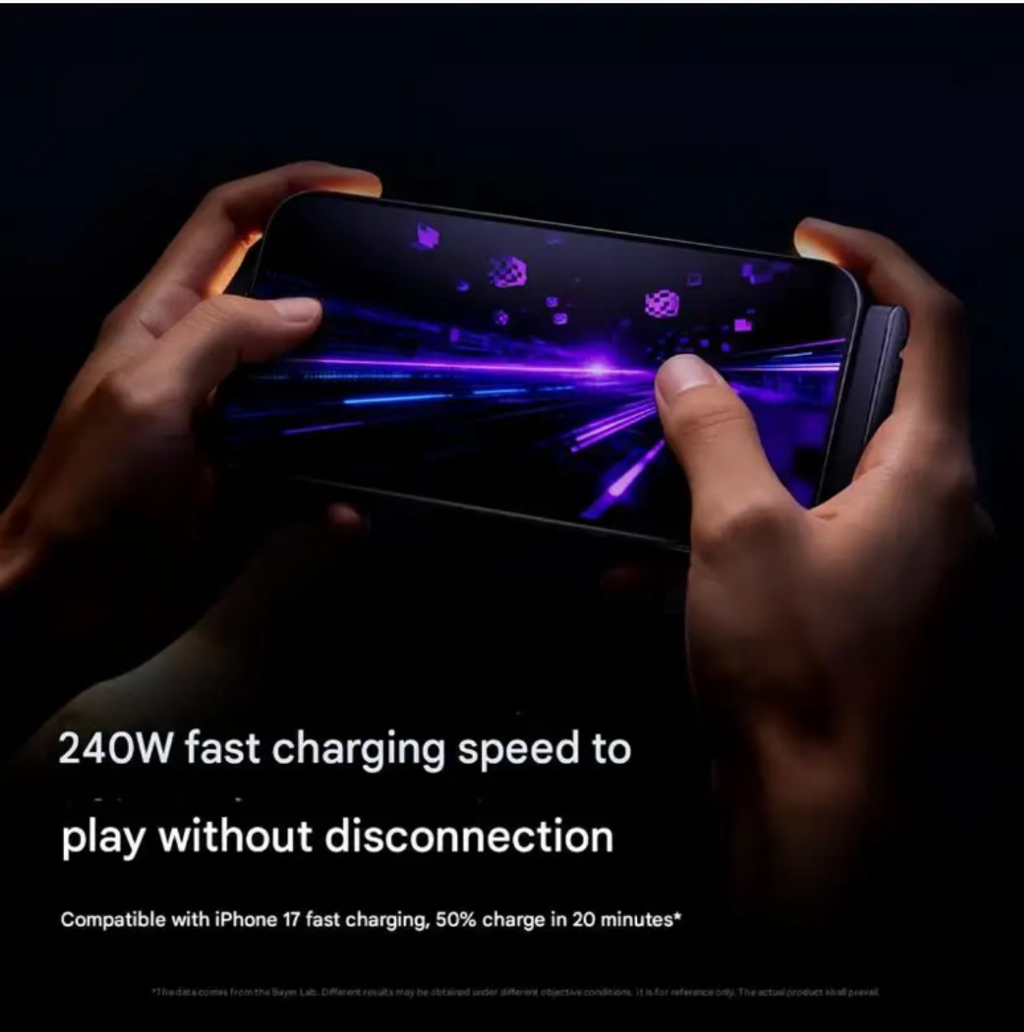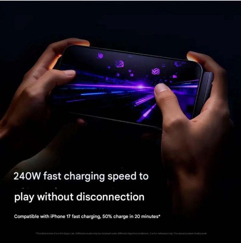 Not only a stand, but also the "fast charging king": With a 240W power rating, it is compatible with computers, tablets, and phones. Charging an iPhone 17 for 20 minutes can fully charge it to 50%; while playing games, charge while playing, and the battery level will keep rising, never worrying about the game ending halfway due to power loss.