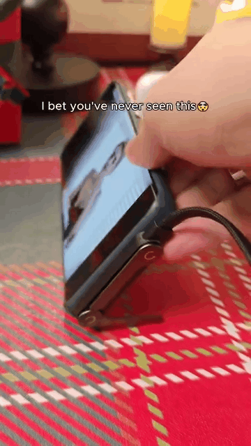 No need to bring an extra stand: The data cable comes with a foldable stand that can support the phone with just one fold. You can switch between portrait and landscape modes at will. —— While lying on the sofa to watch TV, you can support the phone and free up your hands; when working at the desk, you can place the phone on the desktop in landscape mode and it will be stable. You can charge the phone and watch TV at the same time.