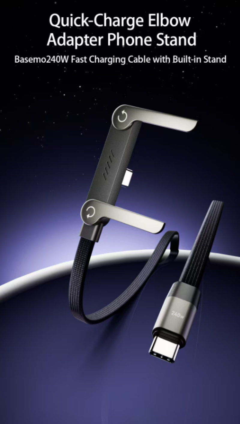 Order today and get 2 right away! This all-rounder charging cable combines,Take care of your charging needs and enjoy unlimited binge-watching! 240W fast charger with a foldable stand. It works for both phones and laptops. It can transfer files at 480Mbps. It has a right-angle elbow connector for convenient charging while playing, and the stand is stable once you fold it. The braided cable is durable and compatible with multiple devices.