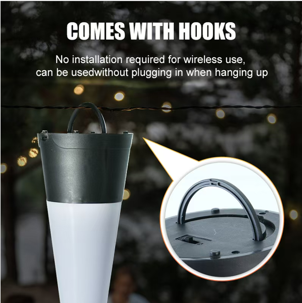 The small conical body can be carried around with one hand: During camping, it can be hung on the tent pole, serving as both a night light and a mosquito repellent barrier; when having barbecue on the balcony, place it beside the table, no longer having to chew on skewers while waving away mosquitoes; even at work, put it on the desk, the soft light + weak wind can even soothe the irritable mood.