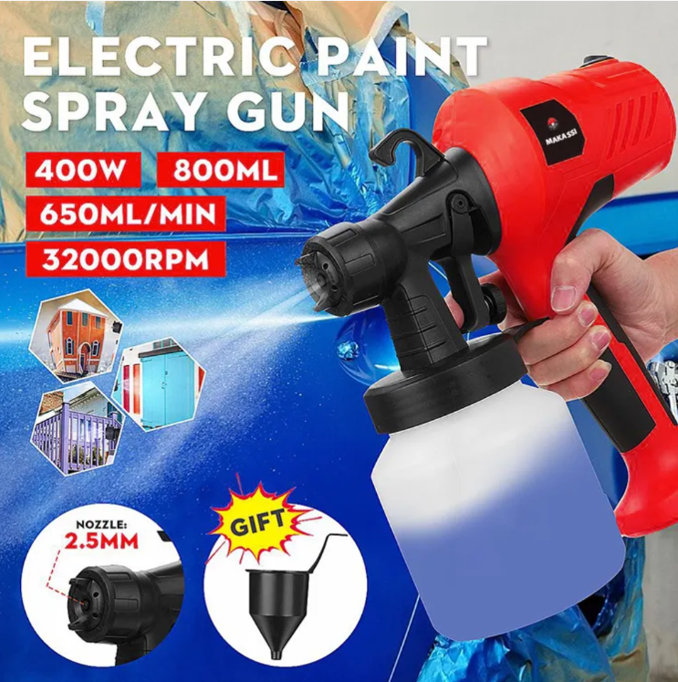 The electric spray gun is extremely practical! With a power of 400W and a capacity of 800ML, it sprays the paint quickly and evenly. It can handle tasks such as furniture refurbishment, wall beautification, and even changing the color of small wooden houses or mailboxes. It can easily handle these scenarios, making the painting process efficient and hassle-free!