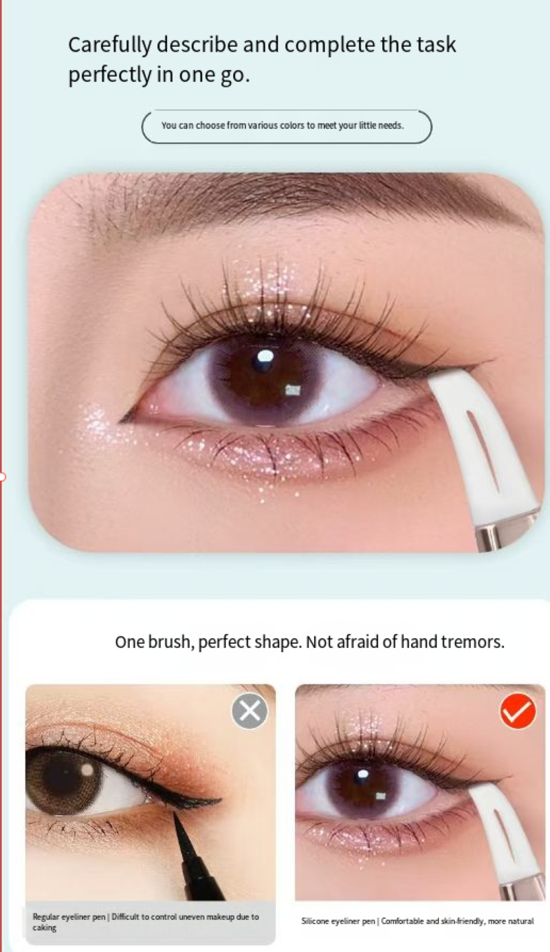 If you are still troubled by the smudging and difficulty in applying eyeliner, then this silicone waterproof non-marring eyeliner pen set is definitely worth a try. It will offer you a brand-new makeup experience, helping you effortlessly create long-lasting, exquisite and charming eye makeup, allowing you to shine with confidence at any time.