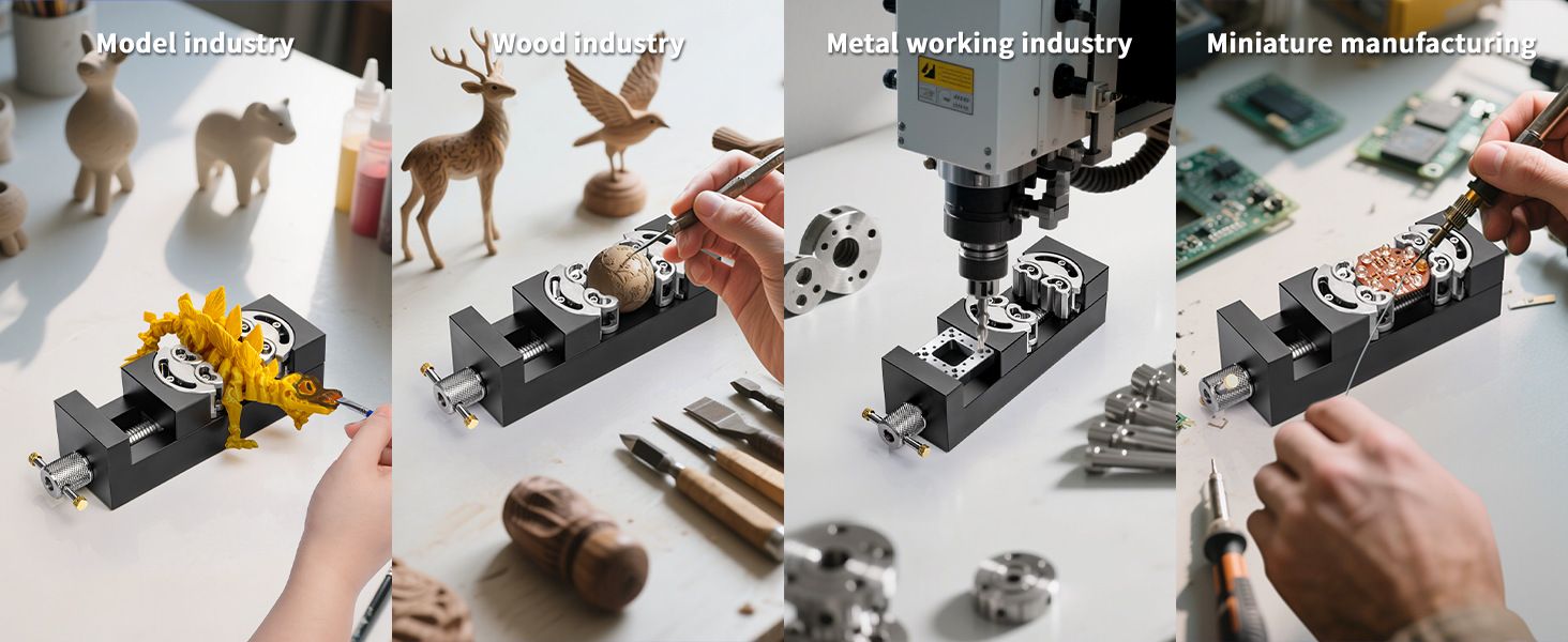 From model fixation by handcraft enthusiasts, fine operation by collectors of cultural handicrafts, to temporary fixation of food ingredients in the kitchen and storage of small items on the desktop, it is both a precise assistant for the workbench and a practical small item in life. With "all-adaptability + stable clamping", "fixing" becomes simple and reliable.
