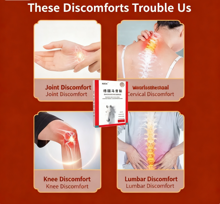 Sitting at a desk for long periods, stiff lumbar spines, joint discomfort from frequent social engagements, and soreness in the shoulder and surrounding areas due to exercise... Various pains and stiffnesses in the body have become the "invisible burden" of modern life. German Horse Oil Plasters, with European herbal extracts at its core, combines traditional craftsmanship with modern transdermal technology, providing a "one-apply-relief" new experience for discomfort in joints, lumbar spines, cervical vertebrae, and other areas.