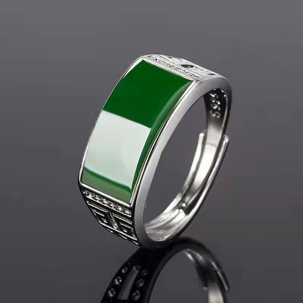 This pair of jade couple rings embodies the embodiment of Chinese aesthetics and the bond between lovers. The male ring features a square-shaped jade stone, with a rich emerald color like deep water ripples. The silver edges are engraved with intricate patterns, presenting a sleek and dignified quality that exudes a sense of stability when worn on the finger. The female ring is wrapped with silver filigree and round jade beads, with silver threads interwoven like vines around the heart. The gentle curves highlight the brilliance of the jade beads, and every movement reveals a sense of grace and warmth. The jade color is derived from the natural texture, with varying shades representing the vitality of spring's willow green. The cold light of the silver ornaments complements the jade color, highlighting the clarity of the jade and adding a touch of delicacy and refinement. The contrast between the firm and the soft design is like the complementarity and compatibility between lovers - his stability is her support, and her grace is his tenderness. Worn on the finger, it is not only an eye-catching accessory for daily wear but also an exclusive Sympathy hidden in the details, and every time you raise your hand, you can feel each other's intentions.