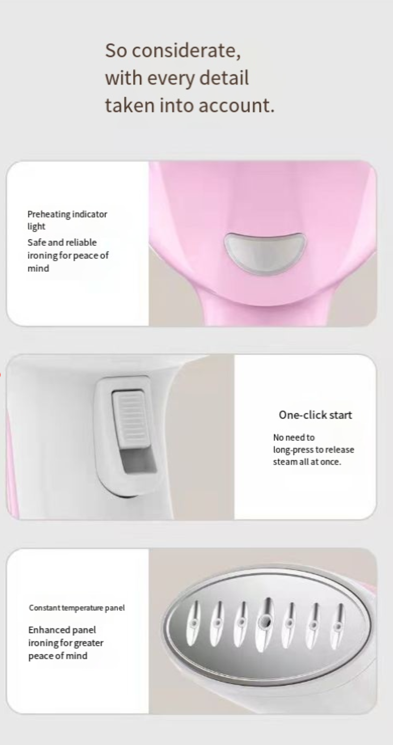 Quick heating: After starting, it only takes a few seconds to produce steam. Even in the morning when you are in a rush, you can quickly tidy up your clothes.