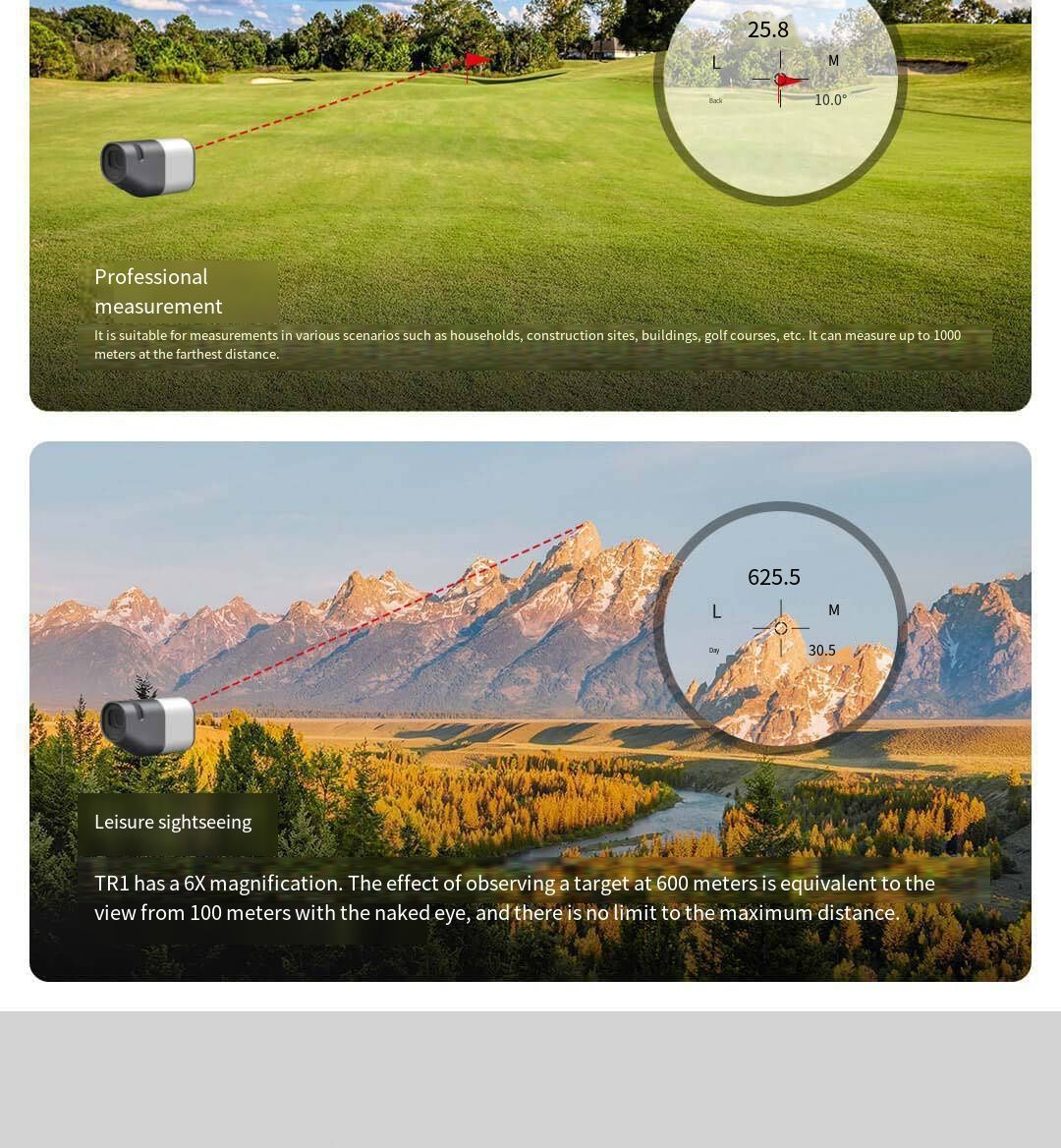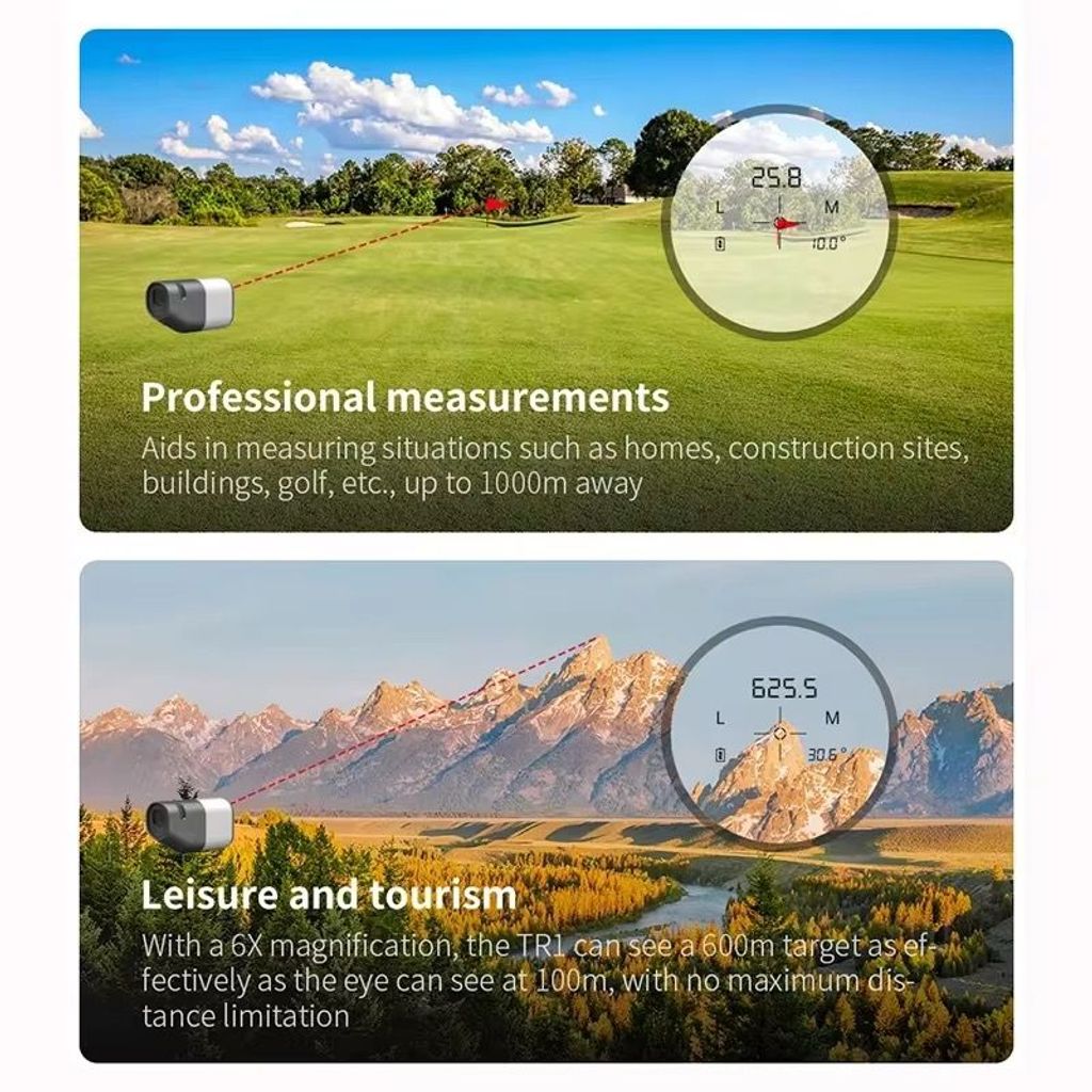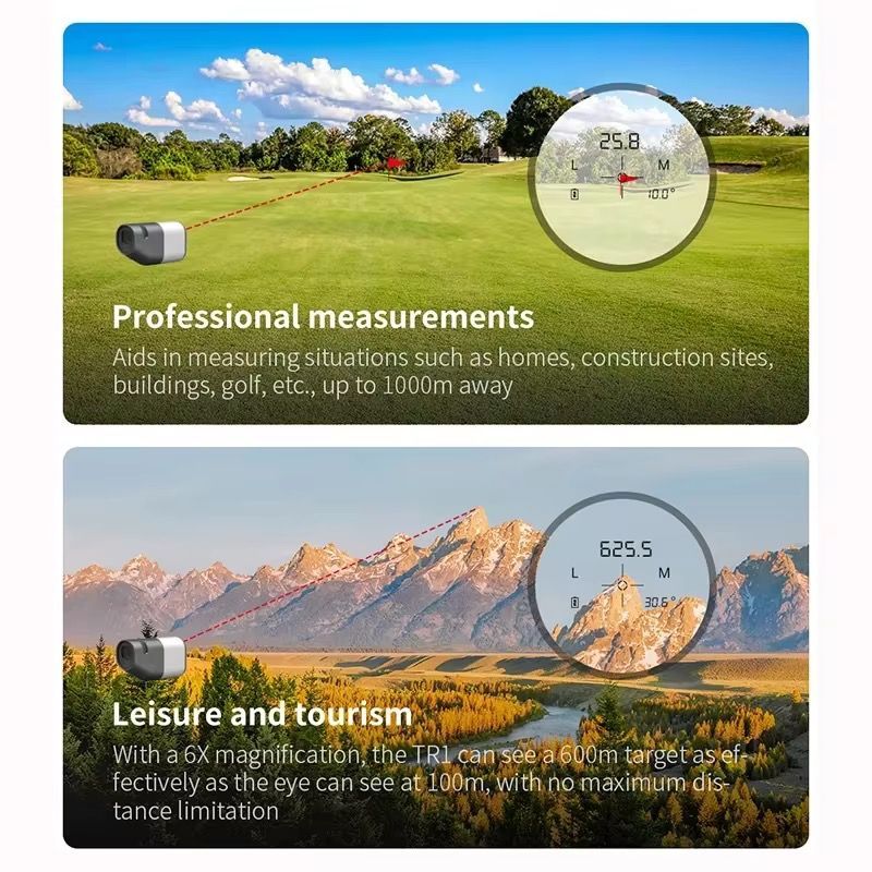 DUKA/ATuMan TR1 Portable Distance Measuring Telescope integrates professional distance measurement, angle measurement and high-definition viewing functions. Its 6x magnification optical system is combined with ±6D refractive adjustment, allowing nearsighted and farsighted people to observe clearly with their naked eyes without the need for additional glasses. The high-transparency LCD screen provides accurate display, and its lightweight design is portable and easy to carry. The rechargeable battery ensures no frequent battery replacements. Whether for engineering surveying, outdoor travel, golf sports, or event viewing, one unit can meet multiple scenarios. It combines professional performance with convenient experience, making it a practical choice for outdoor enthusiasts and engineering professionals.