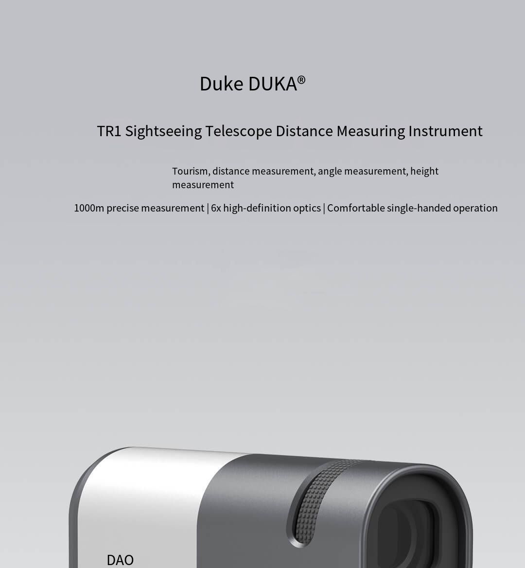 The multi-functional DUKA TR1 distance measuring telescope features a 6x magnification optical lens and ±6D diopter adjustment, suitable for people with different vision conditions. It integrates distance measurement, angle measurement, and viewing functions. It has a high-transparency LCD screen and a lightweight charging design. It is compatible with various scenarios such as engineering surveying, outdoor travel, and sports events, combining professional performance with portability.