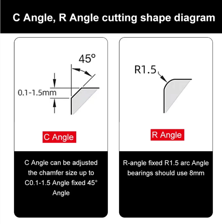 R-shaped chamfering: With a built-in fixed R1.5 arc corner design, it gives the workpiece a smooth and gradual arc edge, effectively avoiding stress concentration. Especially suitable for the arc chamfering requirements of molds and precision components, it upgrades both the durability and aesthetics of the product.