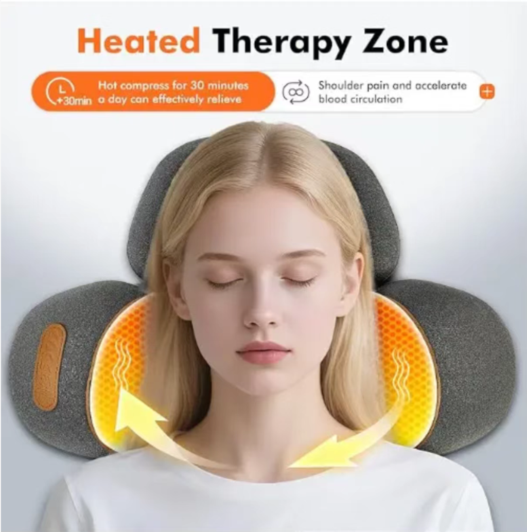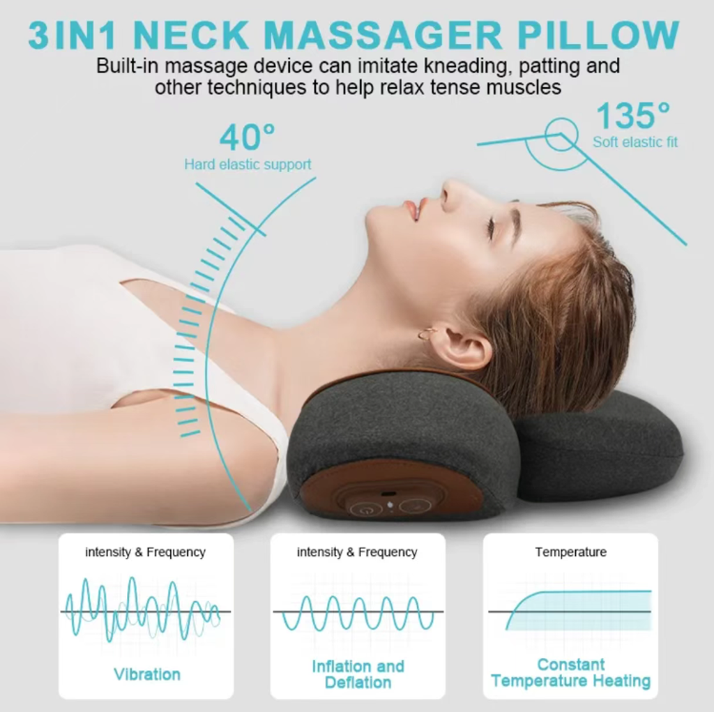 - A heated massage pillow with traction function