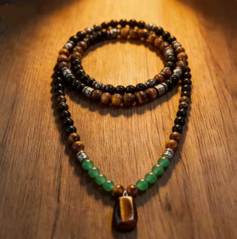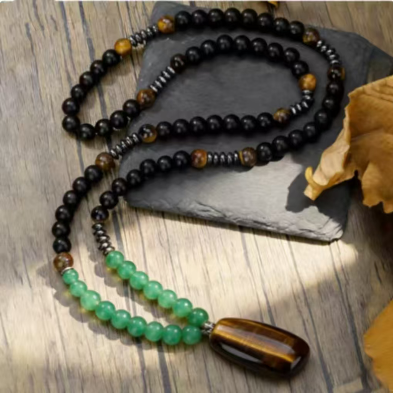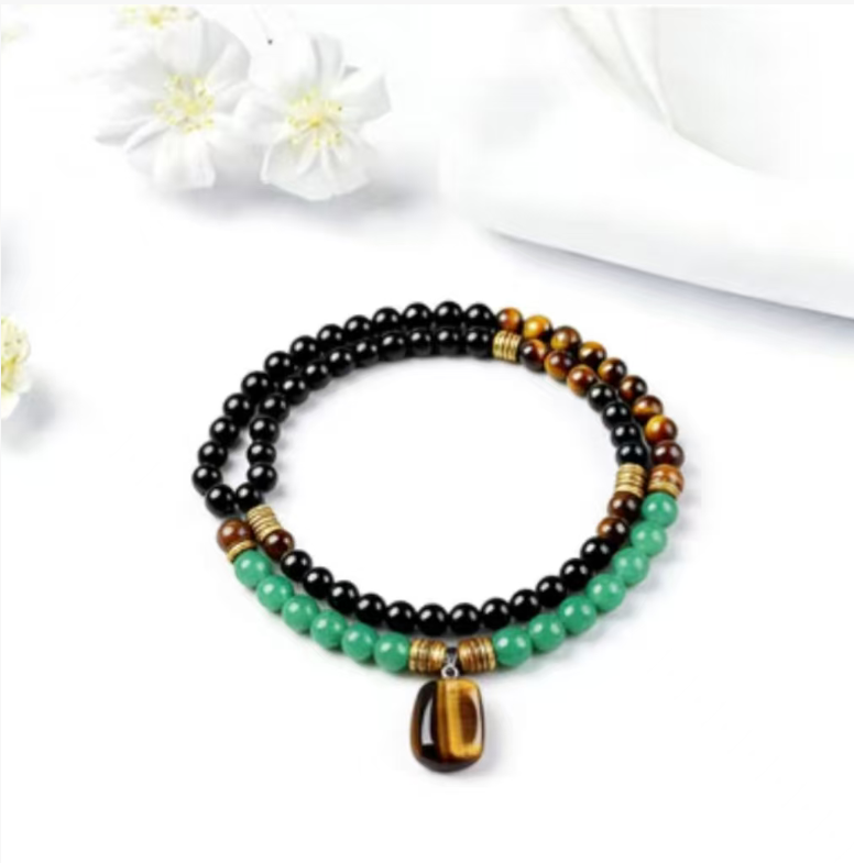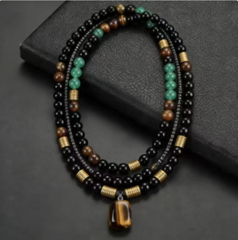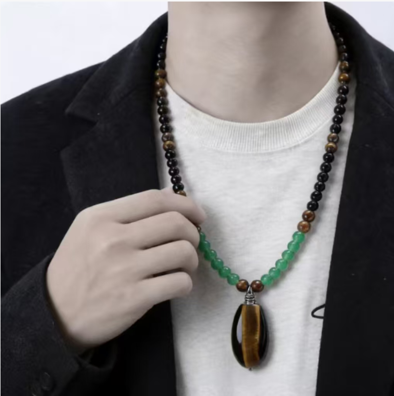 In the long scroll of Eastern culture, "tiger" has always been the totem symbolizing courage and strength. Now, we have combined the majesty of tiger eye stone, the composure of black agate, and the vitality of green turquoise into a wearable artistic item - the Tiger Courage Stone Necklace. This allows the natural charm and the demeanor of a gentleman to resonate uniquely at the neck.