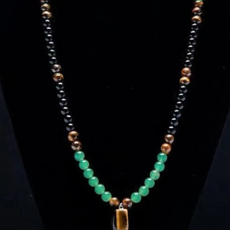 The Tiger Heart Stone Necklace combines the courage of Tiger Eye Stone, the stability of Black Onyx, and the vitality of Green Jadeite. The more you polish it, the more it will display the elegance of a fine piece of jewelry, embodying the strength of both hardness and softness, and conveying the essence of Eastern culture. If you place an order today, you will receive 2 Green Dongling Tiger Eye Stone Enhancing Fortune and Money Magnetic Stone Energy Necklaces.
