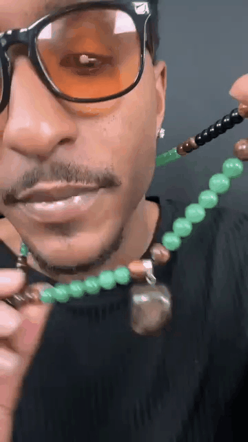 - Two Green Dongling Tiger Eye Stone Enhancing Fortune and Money Magnetism Energy Necklace