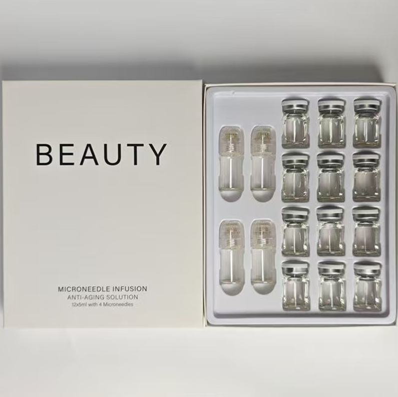 It is the "Essence Absorption Booster": 4 tiny needle tools combined with 12 bottles of essence. The tiny needles gently open the skin's underlying channels, delivering the anti-wrinkle ingredients inside - previously flaky dry lines will become softer, and the sagging jawline can be felt tighter.