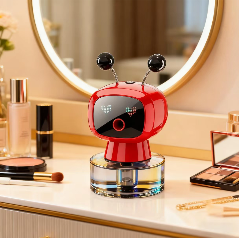 It is adorable and hits the mark for those who are obsessed with appearance: the red and rosy robot body, with eyes that flash hearts and smiles, becomes a small decoration when placed on the center console; the soft rubber antennae are springy and pliable, and when you tap them twice during traffic lights, you can relieve half of the frustration; the crystal base is stable and won't shake or roll around during emergency braking, and it won't roll all over the car like a glass aroma diffuser, making it much safer than a glass aroma diffuser.
